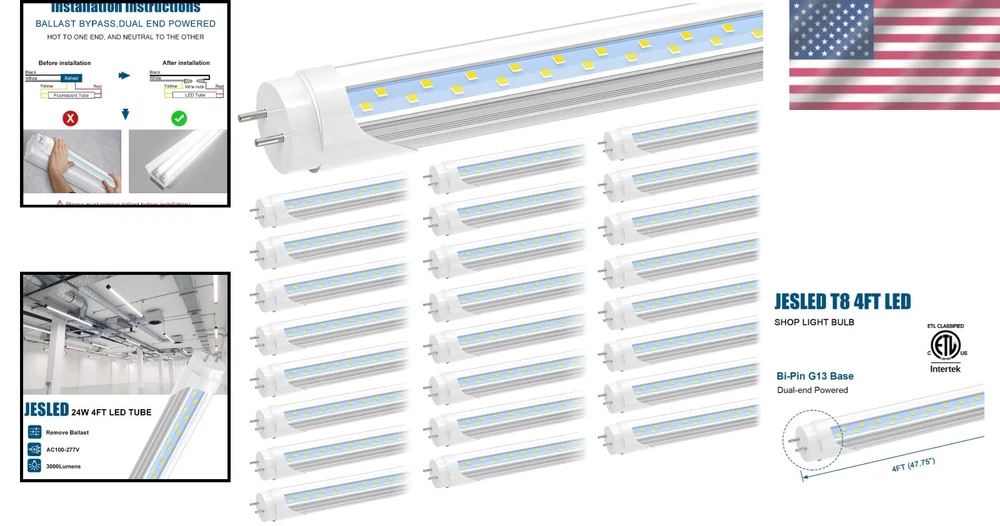 T8 LED 4FT Tubes, 24W, 3000LM Brightness, Remove Ballast Installation - 25 Count ‹ › ‹ › ‹ › ‹ › ‹ › ‹ › ‹ › ‹ › T8 LED 4FT Tubes - Pack of 25 Illuminate your spaces with the exquisite brilliance and efficiency of our T8 LED 4FT Tubes. Engineered for optimal performance, these tubes are not only a beacon of light but also a testament to energy efficiency. Key Features: Exceptional Brightness: Delivering over 3000 lumens with just 24 watts, enjoy vibrant lighting while saving up to 63% on your electricity bills compared to traditional 65W fluorescent bulbs. Hassle-Free Replacement: Designed for easy installation as direct replacements for T8, T10, and T12 fluorescent bulbs. Enjoy a seamless transition without the need for complicated rewiring. Long Lasting Longevity: With a remarkable lifespan exceeding 50,000 hours, these LED tubes promise over 20 years of efficient lighting, reducing your maintenance costs and effort. Simple Installation: Featuring a dual-end powered design, installation is straightforward with included instructions. Professional electrical training is recommended for optimal safety. Why Choose Our T8 LED Tubes? Our T8 LED tubes not only enhance the ambiance of your home or workspace but also offer significant energy savings. Experience bright, clear illumination while contributing to a more sustainable future. Say goodbye to the frequent replacements of traditional fluorescent bulbs and embrace the durability and efficiency of LED lighting. Order your pack of 25 T8 LED 4FT Tubes today and transform your lighting experience forever! Shipping Free & Fast Shipping - We offer free shipping to most of the USA with a normal delivery time of 3-7 days. However, due to the current situation, additional delivery time (up to 3 weeks) may be required for some items. Alternative Carriers - We may use alternative carriers (e.g. USPS, FedEx, UPS, etc.) to ensure your package arrives safely and on time. Due to the use of multiple carriers, we are unable to provide a tracking number automatically. Handling Time - Orders are processed and shipped within 1-2 business days of receiving cleared payment. Shipping Restrictions - Shipping to Alaska, Hawaii, Puerto Rico, Guam, and other US territories may incur shipping charges or delivery restrictions. Please contact us before ordering, or your order can be refunded/cancelled. State Restrictions - There may be restrictions based on your state of purchase. For example, certain items may not be shipped to California due to state regulations. Contact for Tracking Updates - If you require tracking updates or have any concerns about the delivery of your order, please feel free to contact us, and we will be happy to assist you. Return Please see our eBay Return Policy. Thank you. Payment We accept all major credit cards, PayPal, and Apple Pay for your convenience. Your payment information is secure and encrypted to ensure a safe and seamless transaction. Please complete your payment within 3 days of purchase to avoid any delays in shipping. Feedback Your feedback is extremely important to us. We strive to provide the best products and customer service possible. If you are satisfied with your purchase, please take a moment to leave us a positive review. If you have any concerns or issues with your order, please contact us before leaving negative feedback. We are committed to resolving any problems and ensuring your satisfaction. Contact Us If you have any questions or concerns, please feel free to reach out to our customer support team. You can contact us through the eBay messaging system. We are available Monday to Friday, 9:00 am to 5:00 pm EST, and we will do our best to respond to your inquiry within 24 hours. Thank you for supporting our small family business! UPC: Not Set Item Height: Not Set Item Length: Not Set Item Width: Not Set Product Line: Not Set Unit Quantity: 25 Features: Energy Saving,ETL Listed,Instant On,Non-Dimmable,Dual-End Powered,Bright,High Output 3000+ Lumens,50,000+ Hour Lifetime,Durable,Shatterproof Construction,No UV or IR Radiation,Does Not Contain Mercury Material: Aluminum,PC Labels & Certifications: Not Set Brand: Unbranded Bulb Shape Code: T8 Type: T8 Type B Light Bulb Lighting Technology: LED Bulb Shape: Tubular(T) Bulb Wattage: 24 W Finish: Clear Light Color: Cool White Output Voltage: 100-277 V Voltage: 100-277 V Color Temperature: 6500 K Energy Star: Not Set Lumens: 3000+ Bulb Life Hours: More Than 50 MPN: Not Set EC Range: Not Set Indoor/Outdoor: Indoor Connectors: Bi-Pin G13 Amperage: Not Set Number of Bulbs: 25 Model: Not Set Year Manufactured: Not Set Style: 4ft-25pack Country/Region of Manufacture: Not Set LED Chip Code: Not Set IP Rating: Not Set Beam Angle: 180° or More Manufacturer Warranty: Not Set LED String/Strip Type: Not Set Switching Cycle: Not Set Unit Type: Unit