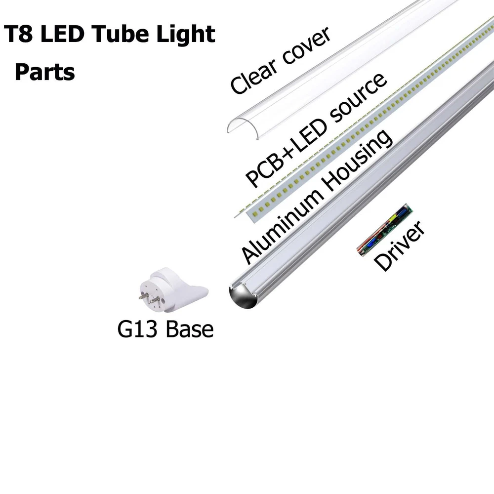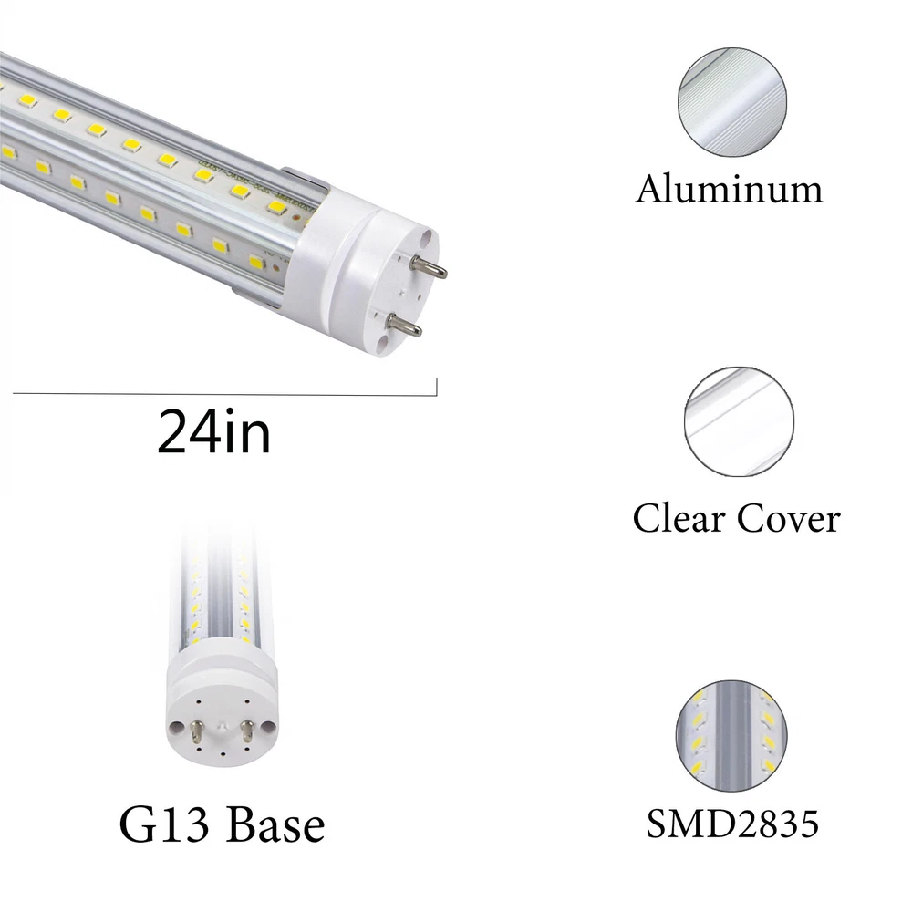 Product Description for LED tube light Power: 2FT:20W Luminous Flux: 2000LM Input Voltage: 100-277V 50/60Hz LEDs:SMD 2835 LED Chips Color Temperature:6500k Beam Angle:270° Cover: Clear Base:G13 Base Length: 2ft Color Rendering Index(CRI):80 Material: High strength aluminum,PC Life Span:50000 Hours package: LED tube+installation manual We are manufacturer ,if any questions and requests, please feel free to let me know.