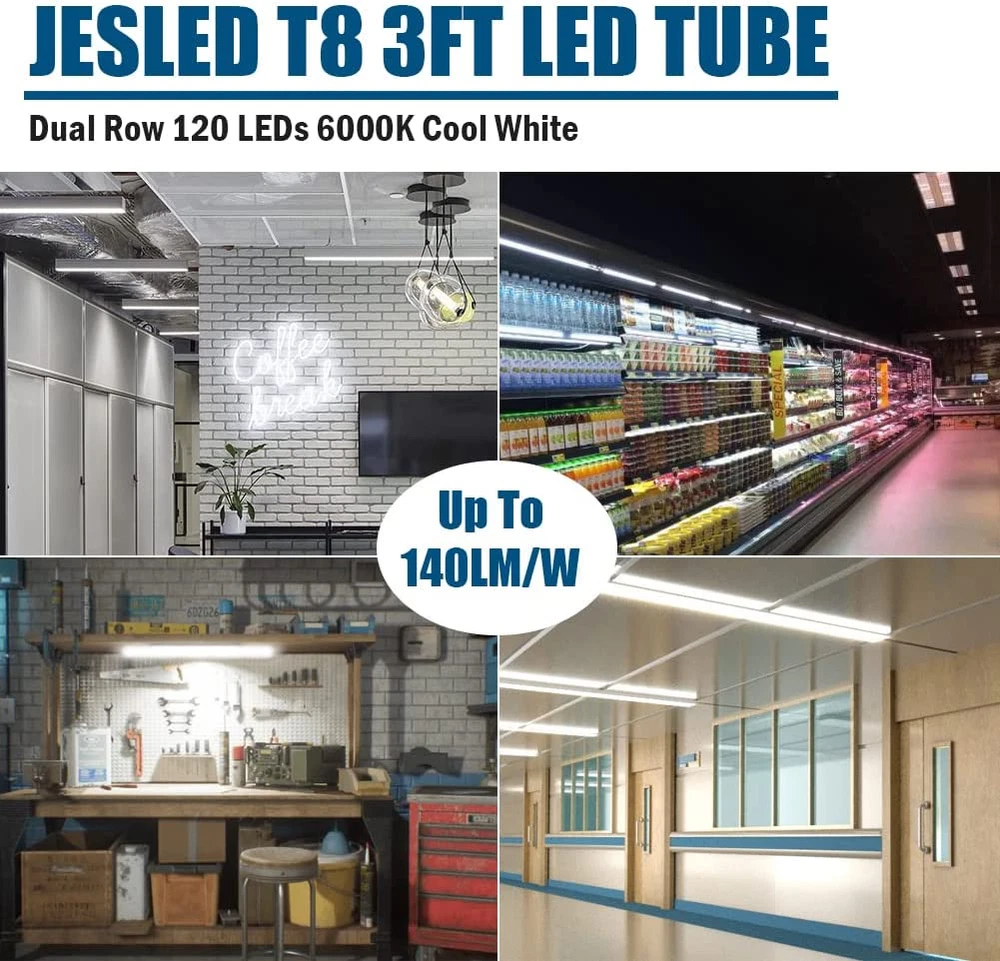 Store New Arrivals Add to Favorite View Feedback Contact T8 LED Type A+B Tube Light 3FT, 2520LM, 18W(45W Equivalent), 6000K, Plug and Play or Ballast Bypass, 36 Inch F30T12 Fluorescent Bulb , Dual Ended, 36” Lighting Tube Fixture (12-Pack) Description Item model number JD-T83FT-G13-A2-TC Light Source Type LED Style 3FT-12Pack Number of Items 12 Control Method App Batteries Included? No Controller Type Push Button Unit Count 12.0 Count Batteries Required? No Light Type LED Bulb Shape Size T8 Material Aluminum, Polycarbonate (PC) Model Name JD-T83FT-G13-A2-TC Specific Uses For Product Indoor use only Manufacturer Lighting Item Package Quantity 12 Indoor/Outdoor Usage Indoor Light Source Wattage 18 Watts Brightness 2520 Lumen Light Color 白色 Item Weight 6.24 pounds Connectivity Technology Remove Ballast Special Features Instant On Special Feature Instant On Color Rendering Index 80 Part Number JDN-T83FT-G13-A2-TC-18CW-12P Color Temperature 6000 Kelvin Color Clear Wattage 18 watts Package Dimensions 36.75 x 5.35 x 5.25 inches Bulb Base G13 Shape T8 Voltage 120 Volts Included Components 12 LED Bulbs Incandescent Equivalent Wattage 45 Watts 【PLUG & PLAY OR BALLAST BYPASS】- JESLED T8 3 Foot Type A+B LED light bulbs can be installed with a ballast( Plug & Play) or without a ballast (BALLAST BYPASS), making LED conversion fast, simple and secure.(Note: Our 3 foot t8 led bulbs don't compatible with dimming ballast, please do not use it with our lights.) 【Fluorescent Tube 】 - JESLED T8 3ft LED light tubes are ideal to replace traditional F30T8 F30T10 F30T12 fluoresent lights, better for fluorescent tube lamps, making LED conversion easier than ever. 【Bright, Energy Saving】 - Illuminate your space with 2520lumens. Cut down 66% bill of electricity when you replace 45watt old fluorescent tubes with high output 18watt 3ft LED tube. Perfect for garage, storage area, workshop, basement, home, under cabinet, parking lot,office general lighting. 【Long Lasting Tube】 - High quality LED chips, no flicker, no noise, Long lifespan up to 50,000+ hours! These 3ft led lights can last 20+ years depending on use, eliminating maintenance costs and reducing relamp frequency. 【Hassle-free Warranty】 -JESLED offers 24/7 after-sale support, 60 days policy and 3 years hassel-free warranty. Please directly if you meet any issues. Product Description ENERGY EFFICIENT Opt in for energy-efficient lighting solution with very low maintenance cost! Our LED lights have a high brightness output while keeping very low heat output. These tubes are composed of state-of-the-art, shatterproof materials and engineered to last in a wide range of environments. SIMPLE PLUG AND PLAY & BALLAST BYPASS INSTALLATION These clear LED tube lights are compatible with most existing fixtures. Fluorescent is simple and LED retrofit can be done easily with a plug and play & ballast bypass installation. APPLICATIONS Workspace and warehouse lighting Grocery stores and retailers Kitchen lighting, office, hospital lights School buildings, classrooms and hallways Supermarket, Garage, Shops, etc. ABOUT US We offer the best prices around on high quality products. Our E-store includes media such as books, movies, music and games while offering electronics, toys, sporting apparel, clothing, tools, general home, garden items and more. SHIPPING We are always working hard to ensure your package arrives as soon as possible. Please understand that some factors like weather, high postal traffic, and the performance of shipping companies are outside of our control. We offer free shipping to the lower 48 states and ship within 2 business days of payment, usually sooner. We do not accept P.O. Boxes. Please provide a physical address. For shipping outside of the continental USA, we only use eBay's Global Shipping Program.The item is shipped to KY and then sent to the rest of the world. International customers are responsible for all duties and taxes. Continue to check out in order to calculate costs for shipping the item to your country. Messages regarding eBay's Global Shipping Program MUST be directed at eBay EXCLUSIVELY. RETURNS We offer a 30-Day Return Policy on items which you are not completely satisfied with. You have the option for a full-refund or an exchange of the item. No returns are available on items shipped outside of the USA. PAYMENT We accept PayPal. CONTACT US This page content is yet to come Please ad us to your favorite seller and visit again later Thank You CUSTOMER SATISFACTION We try our very best to make sure every customer is completely satisfied. If there's a problem, message us! We're happy to help. WE ACCEPT Copyright © 2021 AutoDS. | All Rights Reserved