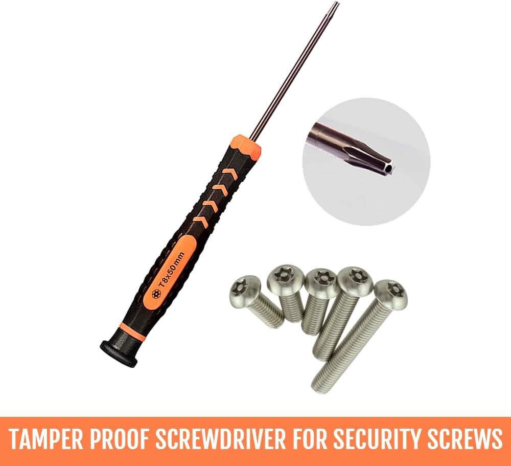 About this item [T8 SECURITY TORX SCREWDRIVER]: T8 precision torx screwdriver is a specialty screwdriver used for various gaming controllers and HDD, as well as for many models of laptop repair. [S2 STEEL MATERIAL]: The screwdriver bit is made of specially hardened S2 steel, providing durability for extended use. [MAGNETIC]: This T8 torx security screwdriver features a magnetic design that helps hold tiny screws, making it convenient to use. [NON-SKID HANDLE]: The screwdriver handle is made of PP and TPR materials, offering a non-skid and comfortable grip. The flexible cap at the top allows for easy rotation. Dimensions: 7.95 x 3.03 x 0.66 inches.