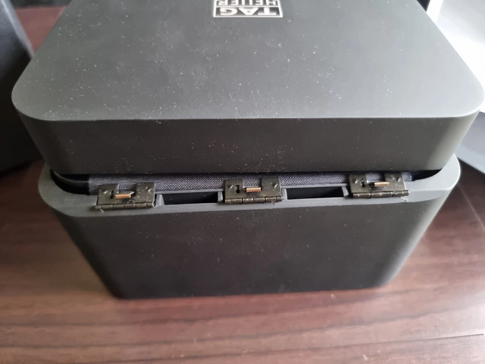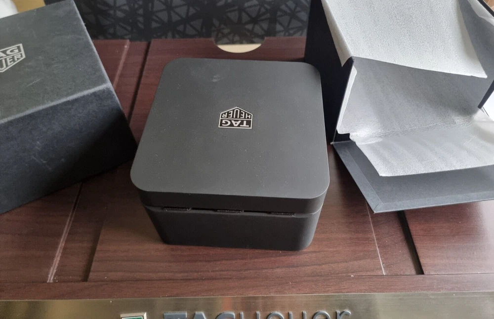 This TAG Heuer Connected watch box is a great find for collectors or owners needing a replacement case. The lid stays secure, but the back brackets are slightly loose—easy to fix if needed. Sold as-is, so check the photos carefully before bidding. Perfect for keeping your luxury watch safe!
