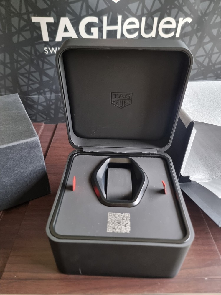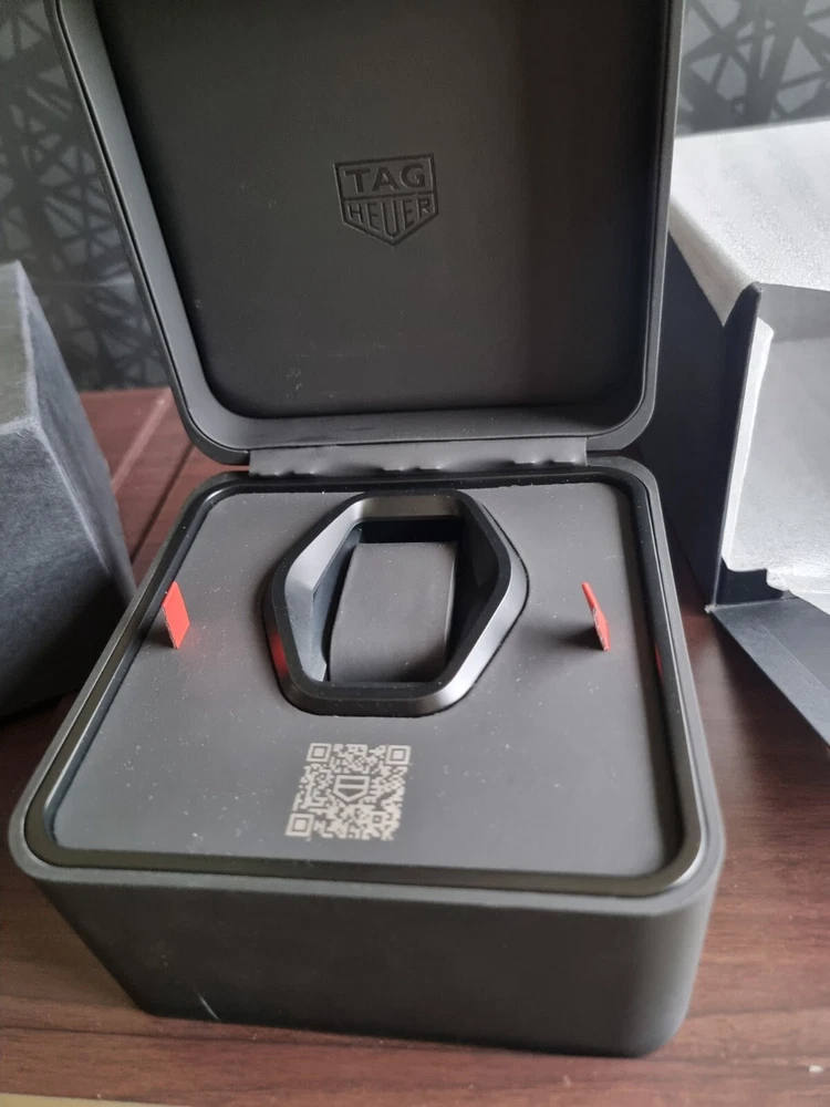 TAG heuer original Connected watch box the box is used. the lid is attached but as the images show the back brackets are loose or undone. Please see images This is a No reserve auction. please only bid if you are sure. Thank you code: 00A3