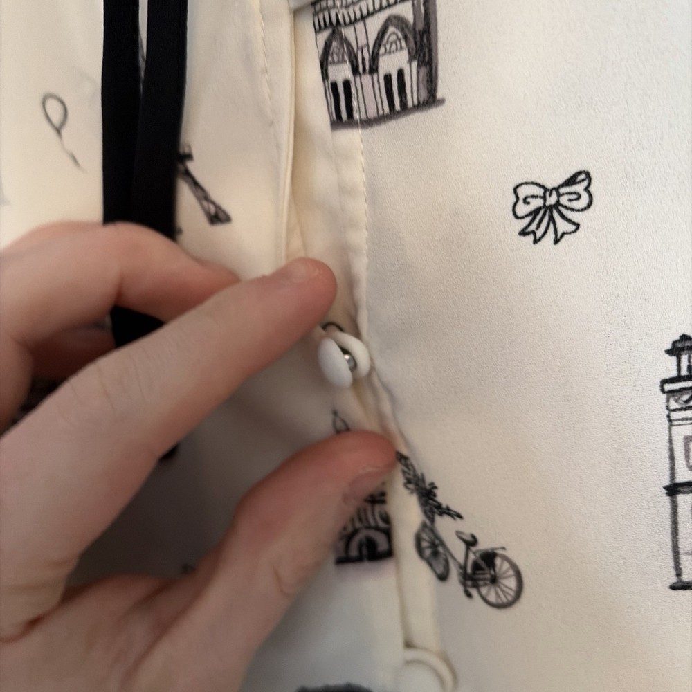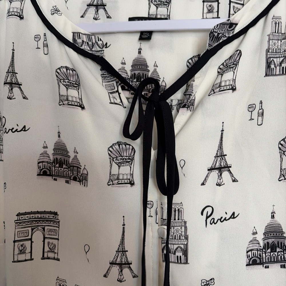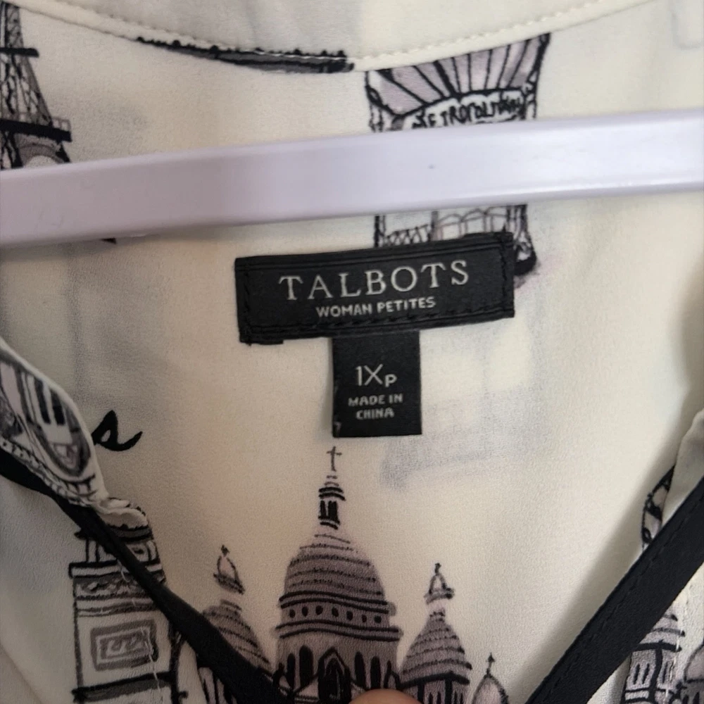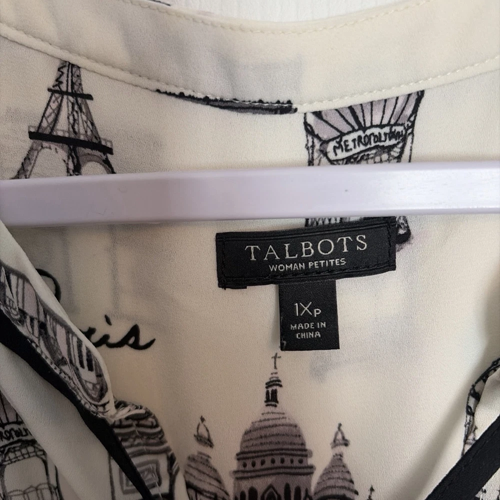 The TALBOTS Paris Theme Tie Neck Long Sleeve Button Down Blouse in Women's Petites size 1XP is a versatile and stylish top suitable for various occasions such as travel, casual, workwear, and business. Made of polyester material, this white blouse features a tie neck neckline and button accents, adding a classic touch to the basic style. Machine washable and suitable for all seasons, this blouse is from the trusted brand Talbots and is perfect for petite women looking for a timeless and chic addition to their wardrobe. Comes from smoke free pet friendly home.