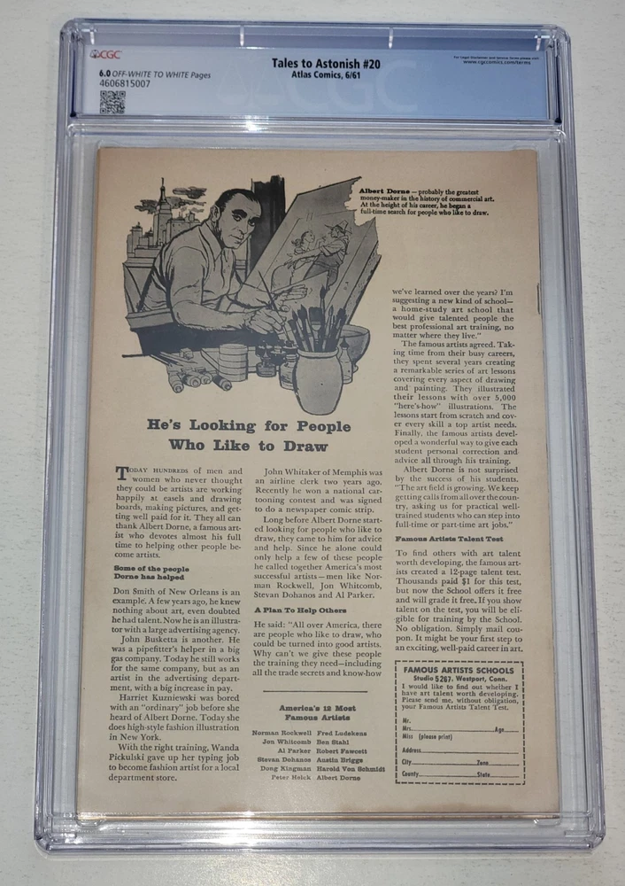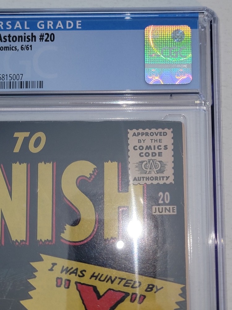 The product is a vintage comic book titled TALES TO ASTONISH #20 from 1961 featuring art by Jack Kirby & Steve Ditko. This single issue from the Silver Age era of US Comics showcases a horror and sci-fi story called "X Still lives!" with characters from the Atlas/Marvel universe. The comic book is a collectible item in color, with a Fine/Very Fine grade range, making it a valuable addition to any comic book collection for general audiences who appreciate classic comic book art and storytelling. - Beautiful new case - Off-White to White pages - Bagged and boarded - Shipped with Gemini packing to insure no damage during shipping - Usps Priority, insured Check out our other Silver Age Classics and 1000s of other comics in our store We combine shipping