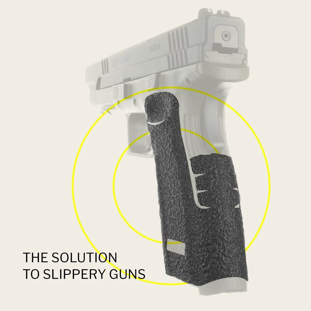 TALON Grips for Full Size Springfield XD 9mm/.357/.40 models with both the 4" and 5" barrels. This rear wrap grip is available in both granulate and rubber textures. This grip has full coverage on the side panels through the thumb rest, logo cutouts on each side, ample coverage on the backstrap and full coverage under the trigger guard. Improved Confidence, Safety & Control: Our stick-on pistol grip creates a functional and positive interface between you and your firearm Faster, More Accurate Follow-Up Shots: Improve your performance with better traction and reduced recoil; at less than 0.5mm thick, our non-slip pistol grips feel natural in your hands and are strong enough for competition US-Patented Gun Grip: Custom designed and manufactured for the Springfield Armory XD Sub-Compact handgun, our 100% USA-made wraparound gun grip offers maximum coverage and an OEM-quality fit and finish Trusted by Pros: Available in rubber or granulate textures, TALON grips are used by law enforcement officers, military personnel, competitive shooters and firearms enthusiasts; in fact, the NTOA has given us a 4.81 rating out of 5 Install in Minutes, Use for Years: Our comfortable black rubber grips last 1-3+ years and are built to enhance the comfort, features and performance of your Springfield firearm; they suit both concealed carry and open holster carry, as well as personal and home defense