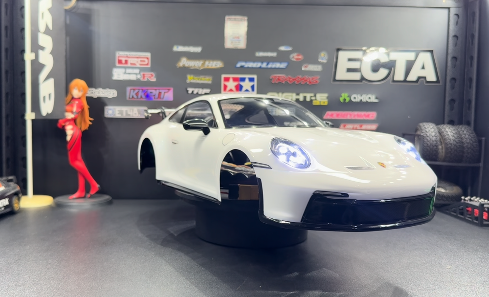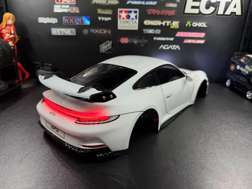 π₯ TAMIYA 1/10 Porsche 911 GT3 Body Shell β LED Headlights | Premium Detailing π₯ Transform your RC car with this TAMIYA Porsche 911 GT3 body shell , engineered for precision and crafted for scale realism. Finished in a sleek high-gloss white and equipped with working LED headlights , it combines authentic Porsche styling with professional-grade quality. Key Features Genuine TAMIYA Quality β Known for world-class RC engineering and craftsmanship. High-Gloss White Finish β Professionally painted for a clean, showroom-ready look. Realistic LED Headlights β Add lifelike illumination and a striking visual effect. Iconic Porsche 911 GT3 Design β Perfectly captures the timeless curves and racing spirit of the original. Aerodynamic Detailing β Sculpted lines and contours for authentic appearance and reduced drag. Body Shell Only β Designed to fit standard 1/10 scale RC chassis (chassis and electronics not included). Why Choose This Body Shell? Collector-Grade Finish β Looks stunning on display and performs beautifully on the track. Durable & Lightweight β Engineered for racing conditions while maintaining premium looks. Easy Mounting β Designed for a hassle-free fit on most 1/10 TAMIYA chassis setups. Important Notes Made to order β carefully built and finished after purchase. Compatible with 1/10 scale RC car chassis only. Add the elegance of Porsche engineering to your RC garage β a true blend of performance, style, and craftsmanship.