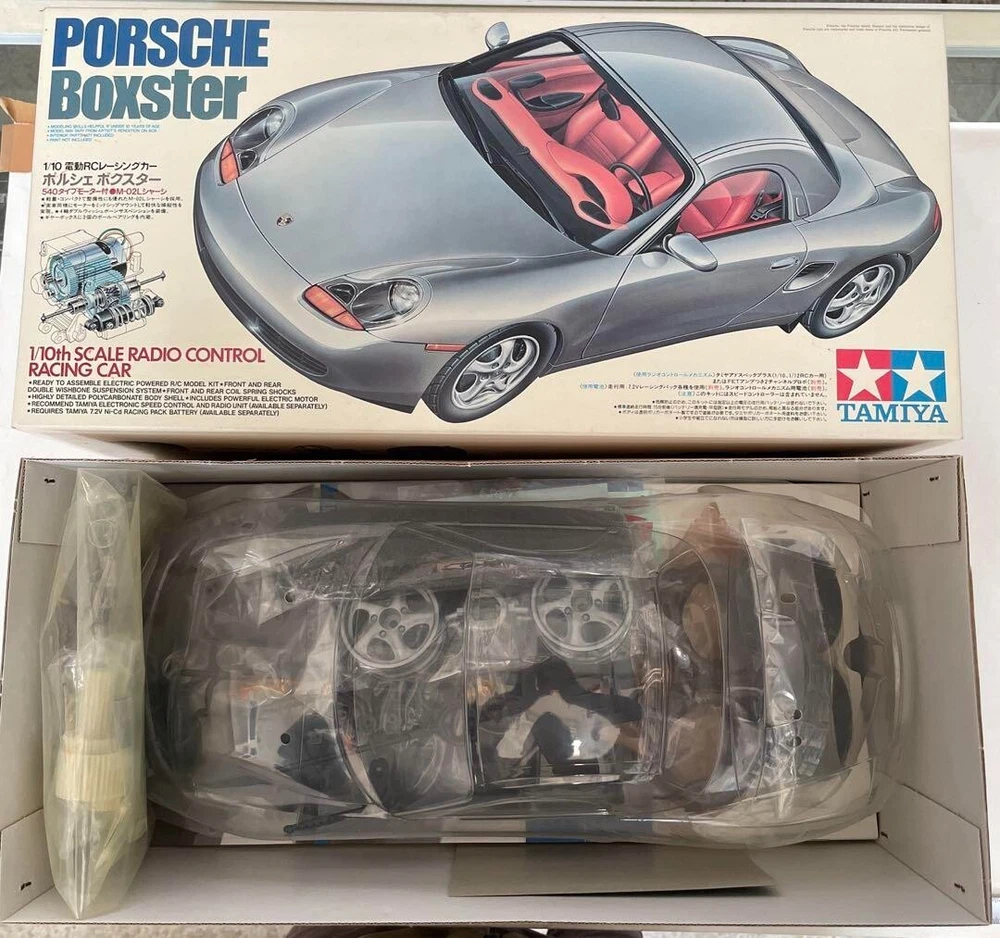 TAMIYA 1/10 RC Porsche Boxster electric radio controlled car kit with detailed assembly