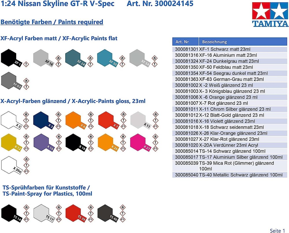 Further Details Title: TAMIYA Nissan Skyline GT-R R33 V-Spec- 1/24 Scale Model Kit 24145 Condition: New Release Date: 01/01/2020 Language: English Item Weight: 281.23 Gramsg Item Height: 152mm Brand: Tamiya MPN: 24145 Age Level: 14 years and up Material: Plastic Item Length: 762mm Item Width: 487mm Scale: 1:24 Scale Character: Cylinder Description: About the Nissan Skyline GT-R V-Spec Nissan's new Skyline GT-R was unveiled in January 1995, almost one and a half years later than other Skyline stable's model change. During the early 1990's, the previous GT-R recorded countless victories, not only on the Japanese racing scene, but also in several foreign countries including the Macao Grand Prix and the Spa Francorchamps endurance race in Belgium. Like its predecessor, the '95 Skyline GT-R was designed to continue its motorsports legend from the ground up. The powerplant for the GT-R is a 2. 6 liter, in-line 6 cylinder DOHC, twin turbocharged unit. Although the maximum horsepower output is maintained at the same 280hp as before, torque was increased by using a higher turbo boost. The race prepared, "V-Spec" model is equipped with Nissan's state of the art ATTESA E-TS PRO variable torque split four wheel drive system. It efficiently distributes the available power to the front and rear wheels, plus controls torque distribution between the left and right rear wheels, achieving perfect four-wheel traction control. The front and rear multi-link suspension is further sport oriented for competition and class performance. The Brembo brake system is used on all four wheels, for positive stopping power. The huge rear spoiler has an adjustable stabilizer, to produce the desired downforce. The massive front and rear blistered fenders, plus a large front air-intake, give the GT-R its very aggressive look. Color: Black Style: Cylinder Theme: Civilian Type: Vehicles Dimensions: 30 x 19.2 x 6 inches Number of Pieces: 1 Plastic Model Kit-Assembly Required Glue and Paint sold separately Manufacturer Item #: 24145 Missing Information? Please contact us if any details are missing and where possible we will add the information to our listing.