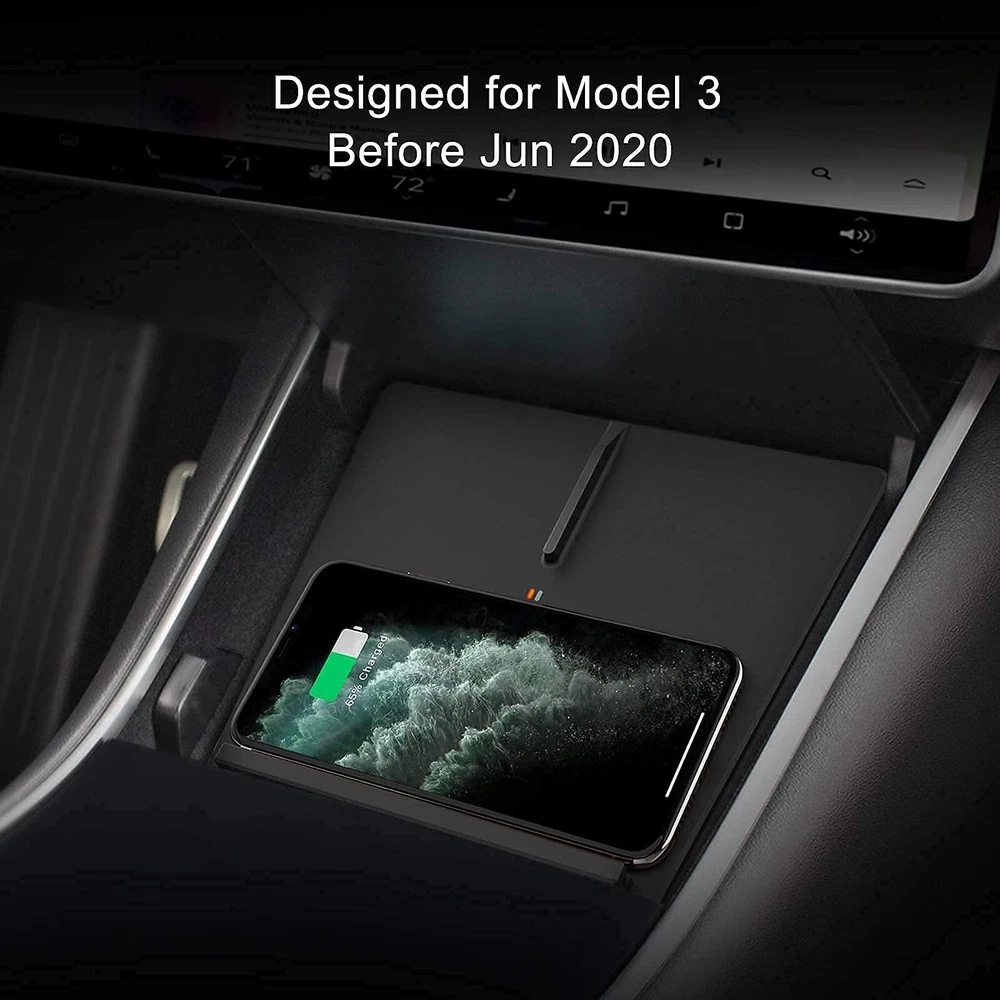 TAPTES Wireless Charger for Tesla Model 3 2017 2018 2019 2020 Accessories,Wireless Phone Charging Pad Car Interior Center Console Accessories for Any Enable Phone(Pre-June 2020) Description Features: Multiple functions:wireless chargers for model 3 not only support wireless charging,but also have a USB Type C wired charging cable at the bottom,which supports wired charging, and can be hidden when you not in use New Version Wireless Charger:New Version TAPTES for Tesla Model 3 wireless charger allows your phone being charged Vertically or Horizontally Compatibility:fits vehicle's center console of 2 Model 3 Standard Range Plus/Mid Range/Long Range/Performance Charging Note:If too thick phone case, please remove the case, if not charging, please check whether there are coins, IC cards and other metals between the phone and charger Dual Independent Wireless Charging:The two microUSB cables are removable, support both side or one side (left or right) working mode,charge 1 phone by 1 USB input, charge 2 phones by 2 USB input Product Details: Brand: TAPTES Connectivity Technology: USB Connector Type: USB Type C Compatible Devices: Cellular Phones Compatible Phone Models: Apple iPhone XS Included Components: Wireless Charger / Pad Gen 2, Manual, 2 x USB Splitters Special Feature: Wireless Charging Your Phone Horizontally or Vertically., Built with a USB Type-C Cable for Android Cellphone Cable Charging. See more Color: New Version Input Voltage: 5 Volts Mounting Type: Tabletop Mount Manufacturer: TAPTES Brand: TAPTES Item Weight: 1.19 pounds Package Dimensions: 8.35 x 7.87 x 1.26 inches Country of Origin: China Item model number: TS00Y000179-1 Manufacturer Part Number: TM3-02-1 Special Features: Wireless Charging Your Phone Horizontally or Vertically., Built with a USB Type-C Cable for Android Cellphone Cable Charging. Amperage: 1.5 Amps Wattage: 5 watts Date First Available: August 27, 2019 Handling We will ship all orders within 3 business days of payment. Delivery We do not ship outside of the Continental US. Feedback We take our reputation seriously, we buy and sell online, so we understand the value of trust. If you are unsatisfied with your order, please contact us and we will work with you to resolve it to your satisfaction.