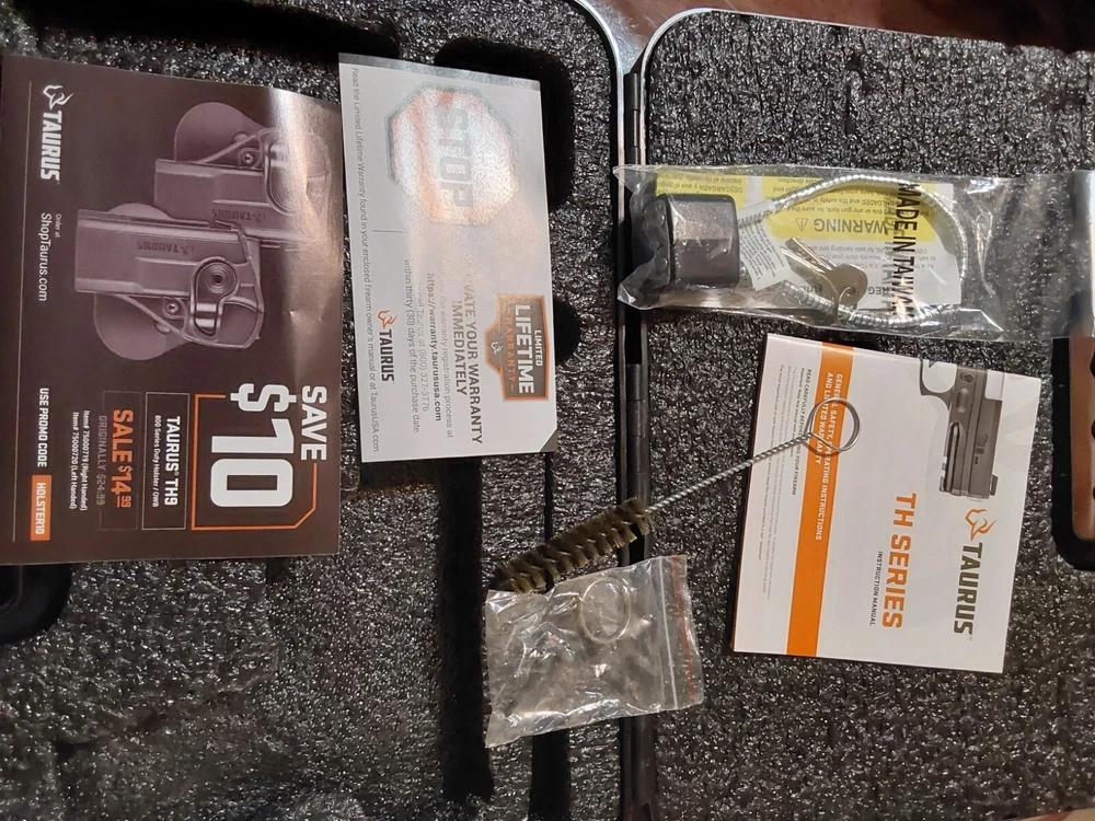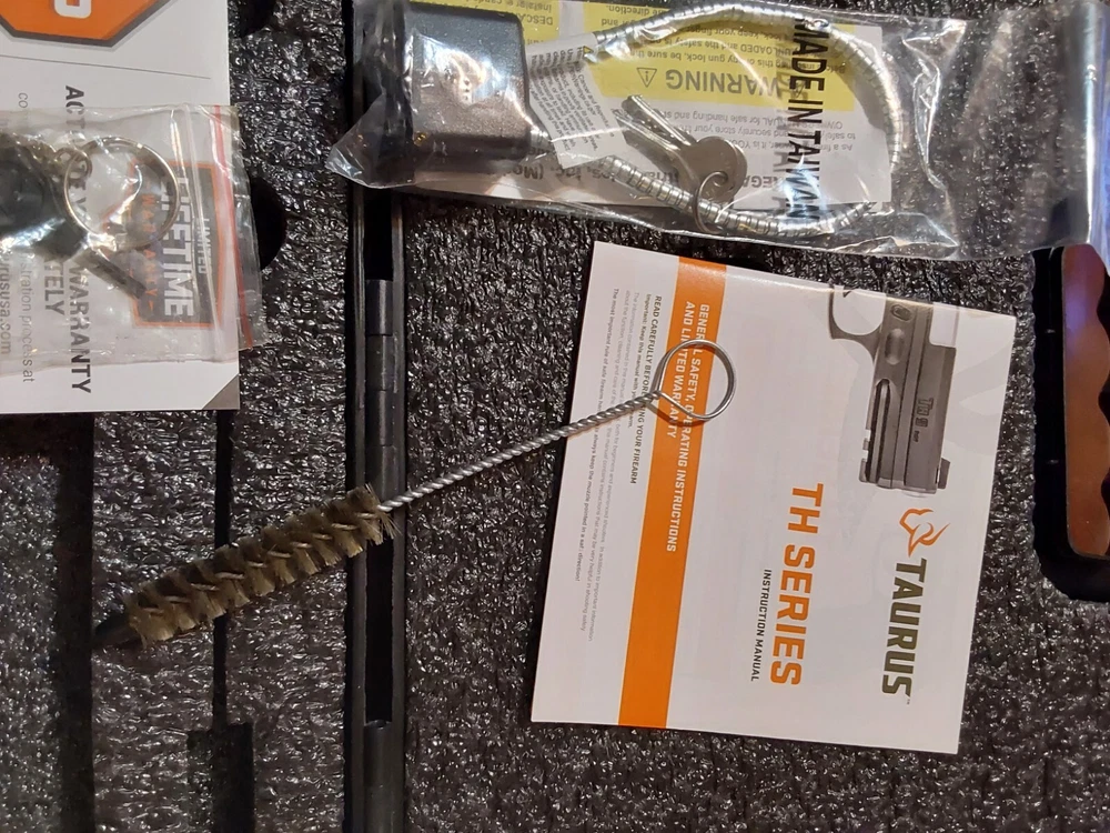 TAURUS TH 40 S/W COMPACT 3.54" BARREL GUN BOX WITH ALL PAPERWORK AS PICTURED. INCLUDED ARE SAFETY AND INSTRUCTION MANUAL, WARRANTY CARD, TAURUS HOLSTER GUIDE, KEY, LOCK & CLEANING BRUSH AS PICTURED. SHIPPED USPS GROUND ADVANTAGE PLEASE CHECK OUT ALL MY OTHER BOXES LISTED