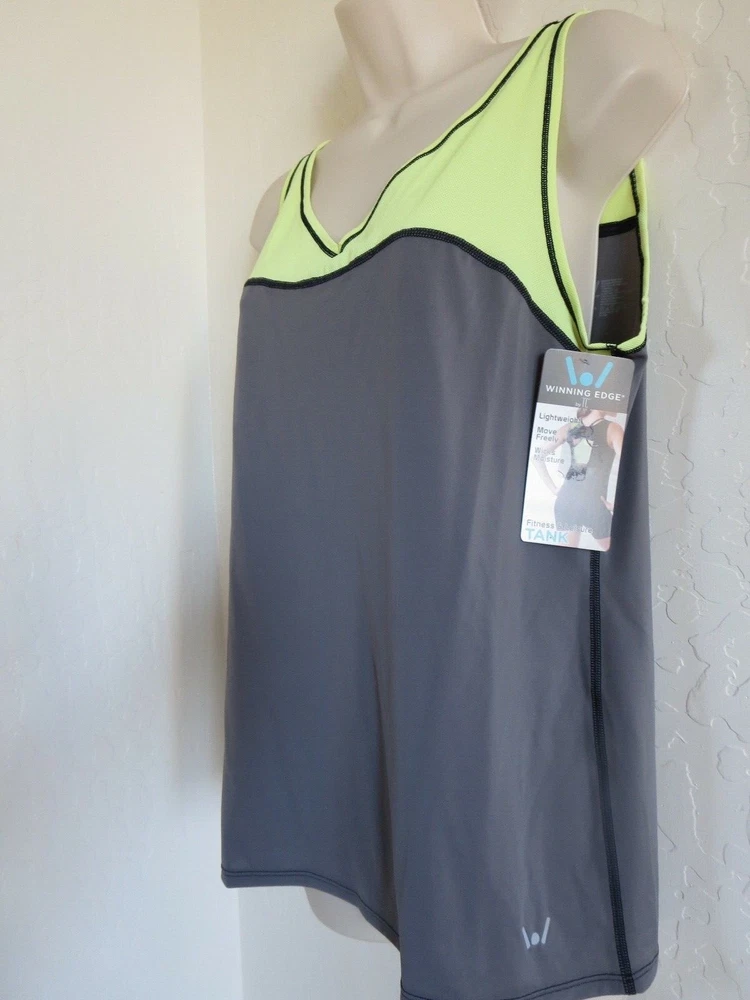 TANK TOP CONDITION: NEW WITH TAG STYLE #: 4341 SIZE : MEDIUM COLOR: SUNLIMCAST / GRAY/YELLOW .... AS SHOWN DESCRIPTION: ACTUAL ITEM AS SHOWN ON THE PICTURE EXCEPT BLACK ON MODEL TC WINNING EDGE FITNESS & LEISURE TANK TOP MSRP $38 If you’re looking for a top you can wear across your wide variety of weekly activities, why not give yourself a Winning Edge®? This tank, made with soft & stretchy fibers, allows comfy, freedom of movement as you work out, run errands, or just unwind. Its specially-designed, moisture-wicking material draws perspiration from the skin and aids in cooling. Its mesh fabric sections, at the bust, straps, and shoulder blades, combined with its open back, provide added breathability and comfort. Choose this fitness & leisure tank as a versatile top to wear in the yoga studio, on the trail, around town, in the gym, or just at home. Body: 82% Nylon, 18% Elastane (Spandex) / Mesh: 80% Nylon, 20% Elastane (Spandex) Machine wash warm. Do not use fabric softener. Tumble dry low. Do not iron. Do not dry clean. Imported If there is any problem with the item after you have received it, PLEASE contact me before leaving feedback . Mistakes do occasionally happen, but I strive to deliver 5 star service!