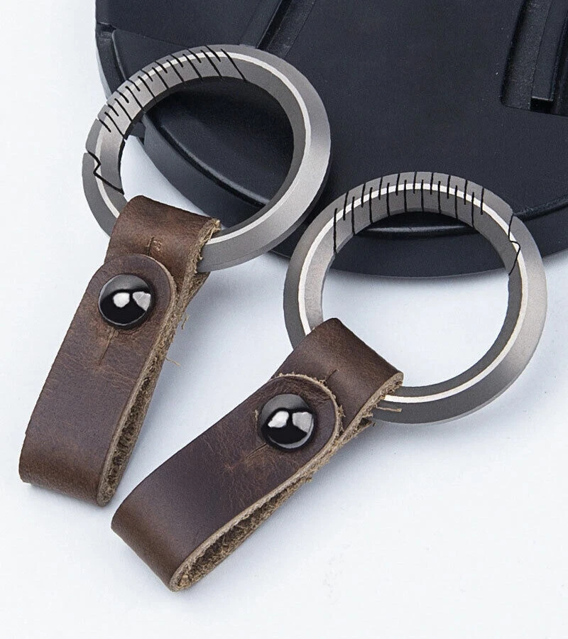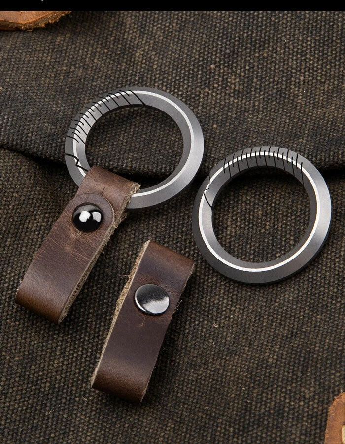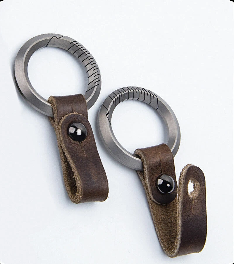 TC4 Titanium + Leather Keychain Removable Key Ring Pendant Portable EDC Tool Set