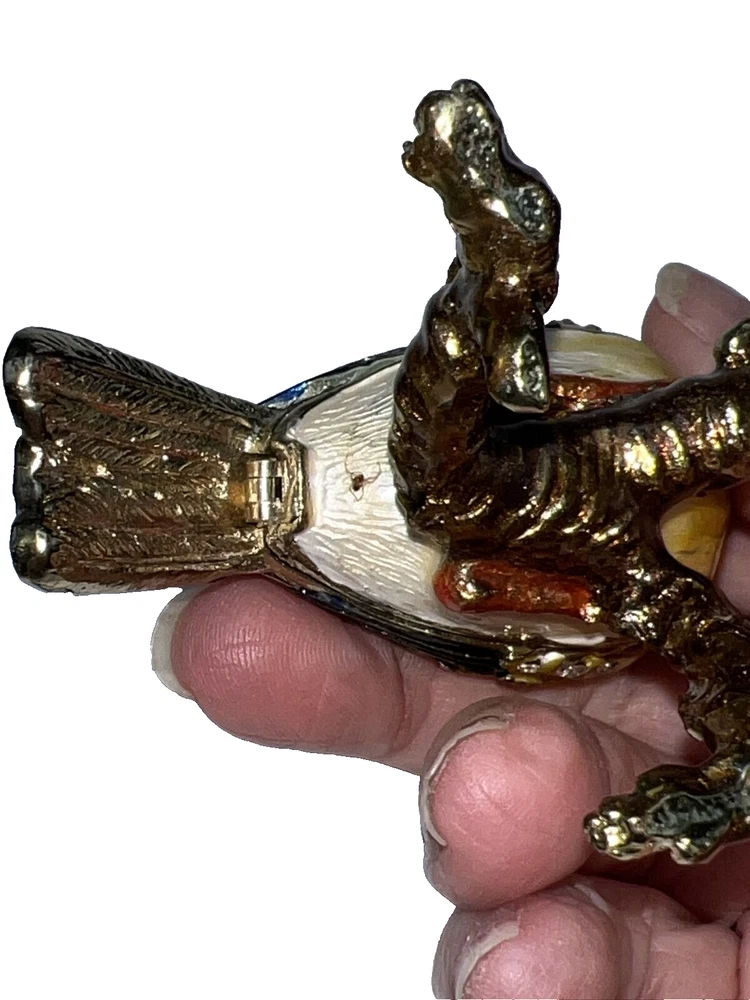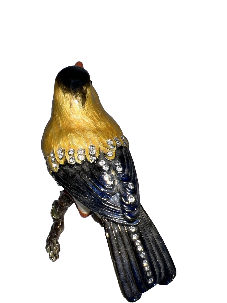 1. This stunning trinket box is a true gem! The intricate goldfinch design sparkles with rhinestones and vibrant enamel details, making it a standout piece. The hinged lid with a magnetic closure keeps small treasures secure, while the metal construction feels sturdy and well-made. Perfect for jewelry, keepsakes, or just as a charming decor accent, it adds a touch of elegance to any space. Whether you're a bird lover or just appreciate beautiful craftsmanship, this little box is a must-have. Absolutely love it!