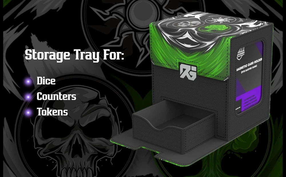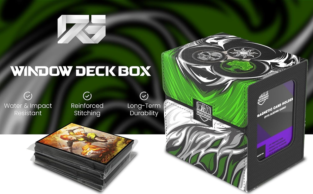 Type: Does not apply Number of Compartments: 1 Opening Mechanism: Snap UPC: 313056872867 Assembly Instructions Description: No assembly required gtin13: 313056872867 Game: Does not apply Batteries Included?: No Brand: Does not apply Recommended Uses For Product: For Trading Cards Item model number: 00717623999726 Item Package Quantity: 1 Pattern: Graphic Special Features: Dustproof, Impact Resistant, Water Resistant Product Dimensions: 3.8"L x 4.8"W x 4.5"H Style: White Black Green Number of Items: 1 Included Components: Magnetic Card Holder Global Trade Identification Number: 00717623999351 Closure Type: Magnetic Set: Does not apply Batteries Required?: No Item Weight: 12 ounces Part Number: 00717623999726 Unit Count: 1.0 Count Material Feature: Durable and Soft Interior Color: Black Leather Material: Faux Leather Water Resistance Level: Water Resistant Size: 81.6 cubic inches Shape: Square Special Feature: Dustproof, Impact Resistant, Water Resistant