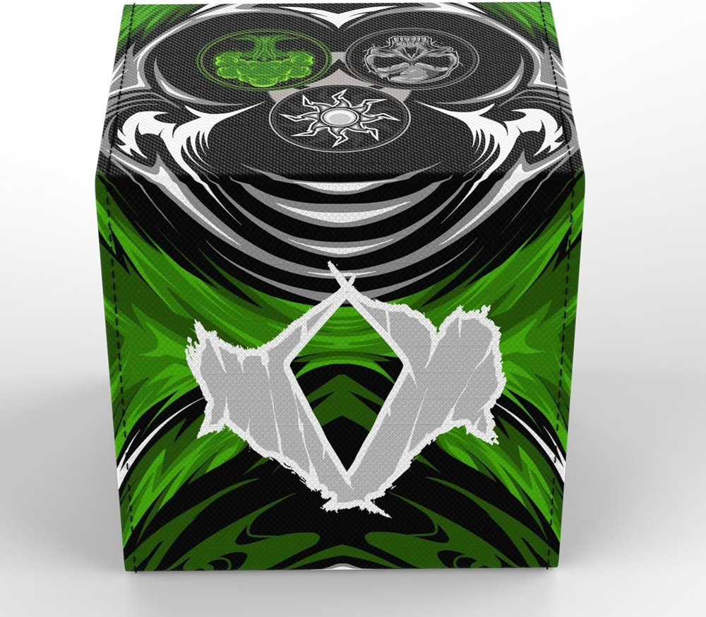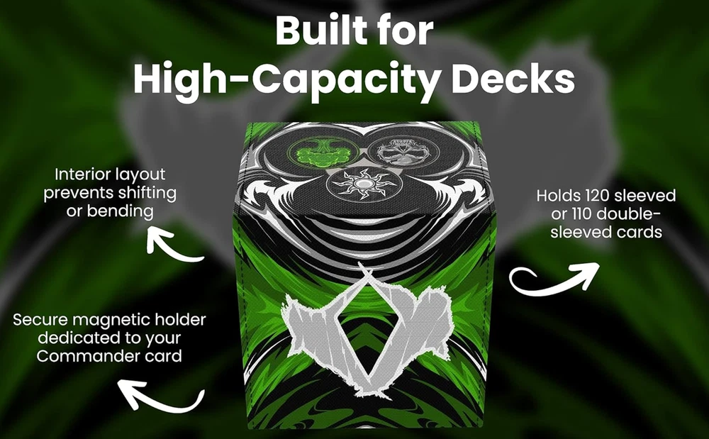 TCG/MTG Commander 100+ Card Art Deck Box with Storage (White/Black/Green)