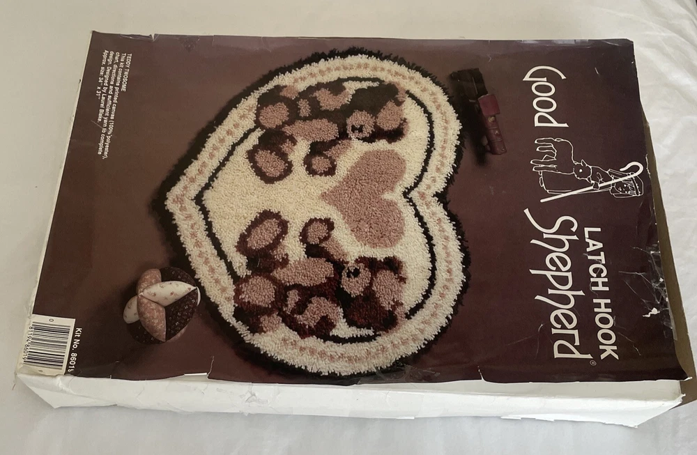 Pre-Owned, Open Box "TEDDY TWOSOME" Bear 1986 # 86019 Good Shepherd Latch Hook Kit 34"x 31" Please note that this is a pre-owned item and shows wear consistent with normal use and age. Unused in open box, box is damaged. Please examine the photos carefully and request more photos if needed. Please feel free to ask questions if in doubt. Please see the photos for the condition of the item(s). Smoke free home. Thank you for your interest. Whenever possible, I use recycled shipping material which a local business saves for me or from my own online purchases. Recycling shipping material aids in reducing the waste that is filling up our landfills. BUYERS: When you purchase one of our items, it is understood that you have read this complete listing description and fully acknowledge and accept what you're buying and the terms of sale. We would appreciate it very much if you're not satisfied with your purchased item, that you would contact us first to resolve any issues prior to leaving derogatory feedback. Our reputation here at eBay is very important to us, and we want you to be happy with your purchase. We strive to offer the very best service to our clientele. Thank you!