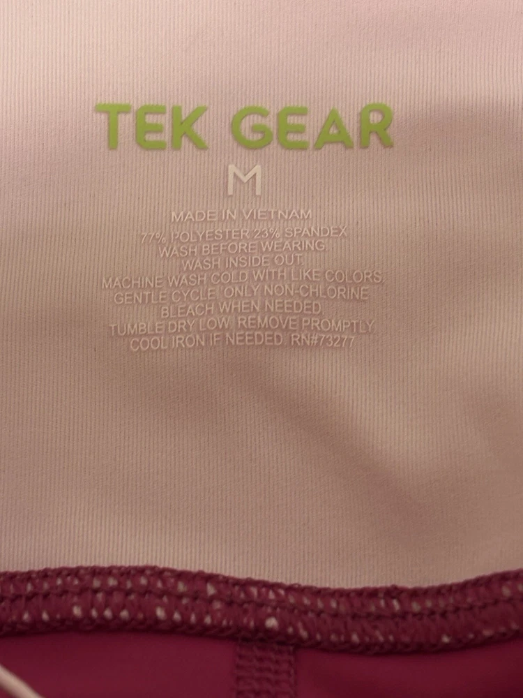 Occasion: Activewear Season: Fall, Spring, Summer Brand: Tek Gear Type: Leggings Closure: Pull On Product Line: unknown Features: Pockets Fit: Athletic Handmade: No Inseam: 24" Size: M Pattern: Solid Department: Women Compression Area: Leg, Waist Country/Region of Manufacture: Vietnam Material: Poly, Spandeex Waist Size: 24" Personalize: No Size Type: Regular Color: Pink Style: Ankle Character: N/A Performance/Activity: CrossFit, Yoga Theme: feminine fitness Garment Care: Machine Washable Fabric Type: Blended Fabric Leg Style: Skinny