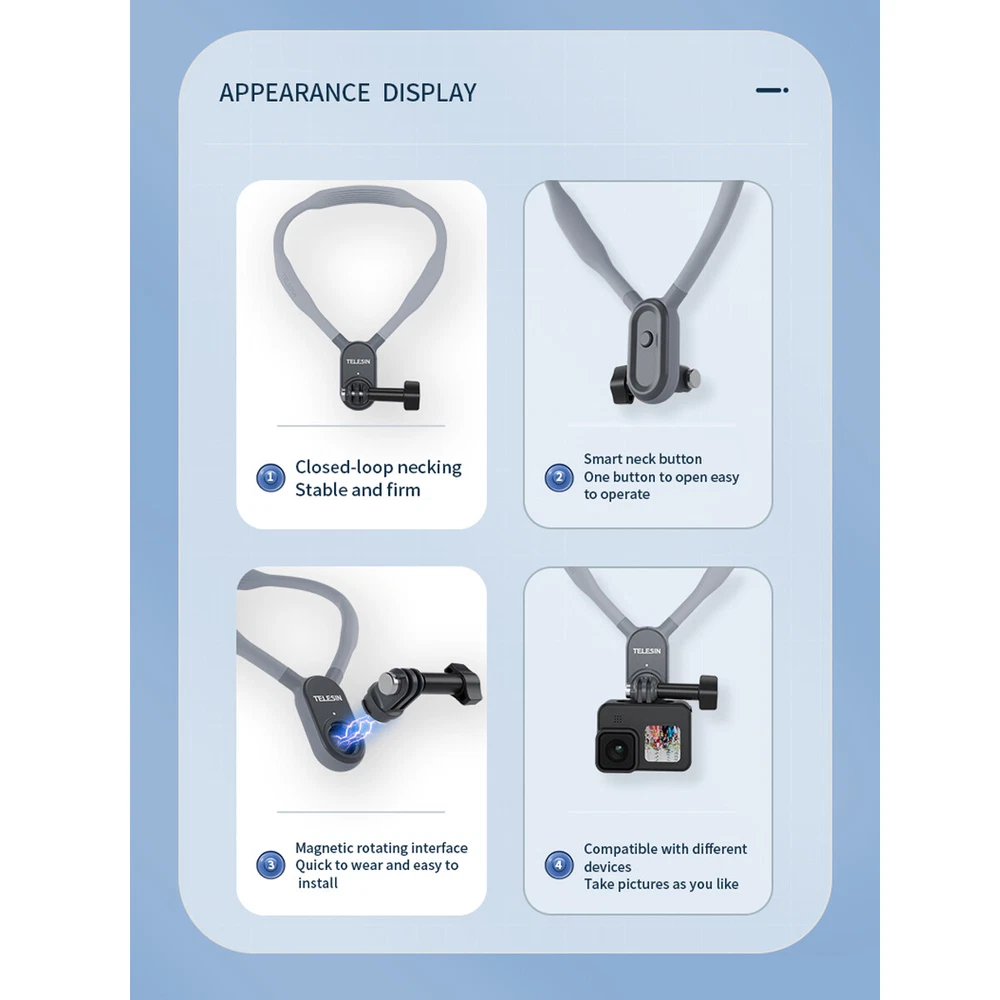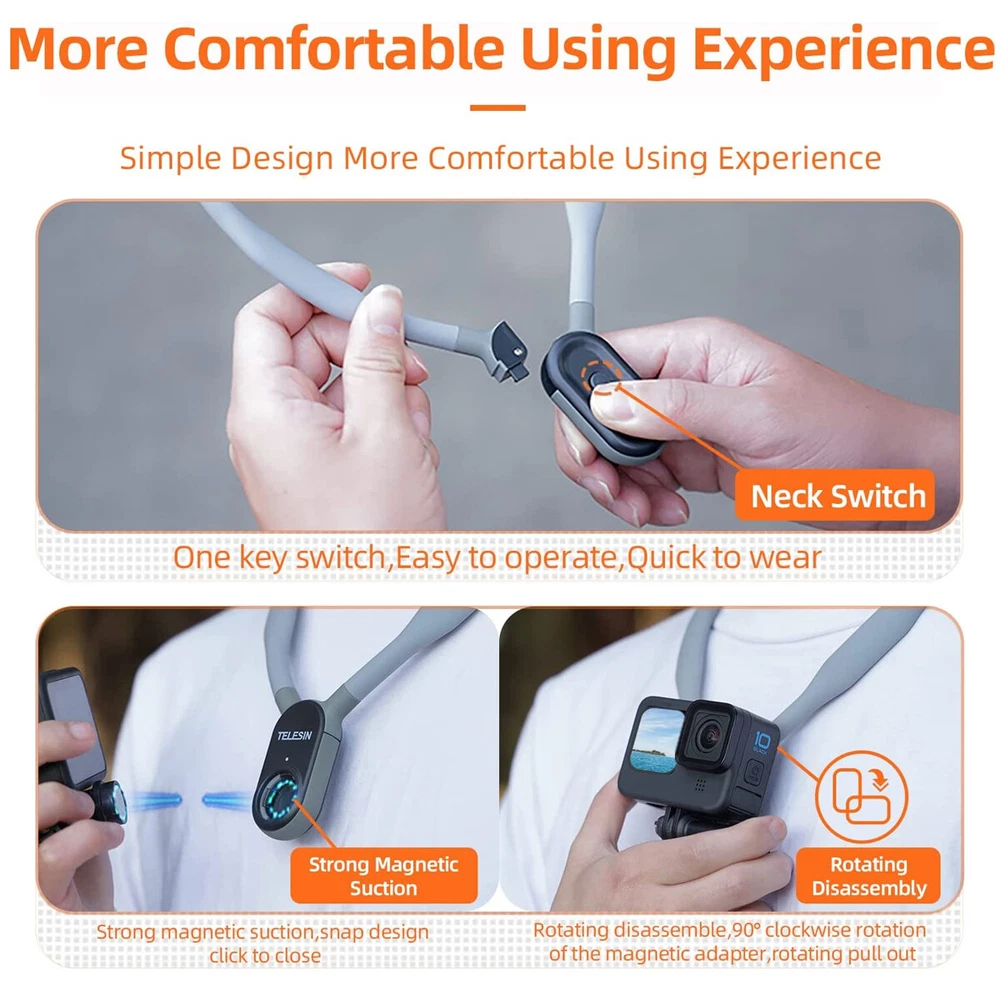 You may also like 2024 Motorcycle Cell Phone Mount Holder Wireless USB Charger 15W Fast Charging_ 33.49 USD Free shipping Black/Silver 360° Rotation Phone Holder Vacuum Magnetic Suction Car Phone Mount_ 21.58 USD Free shipping Product Description ⚡US Stock, the estimated delivery time is about 2-5 business days. 💎100% Brand New and High Quality ⭐Features: 1.Best companion for first person view shooting!Suitable for mountain climbing, cycling, skiing, surfing, traveling vlog, self-driving tour etc. 2.Fit for GoPro,DJI Osmo Action,DJI Action 2,Insta360,SJCAM,EKEN,etc action camera and for IPhone,Samsung,Huawei,Xiaomi etc smartphone(need to use with phone clip and adapter) . 3.Has silicone protective layer,multi-angle arbitrary bending,soft and rigid,not easy to break. 4.Smart phone and action camera both support horizontal and vertical shooting,help you capture wonderful photos! 5.Magnetic rotating interface quick to wear and easy to install. 6.Quick release button helps you quickly remove the neck hold mount! 7.Ergonmic contour shape silky smooth.Feel comfortable to wear for a long time! ⚙Specification: Name: Magnetic neck holder mount Brand: TELESIN Material: Silicone Size: 250mm*170mm*20mm Fit for action camera and smartphone Weight: 180g 🎁Package Included: 1x Magnetic neck holder mount 1x Adapter 2x Screw rod 1x Middle Vertical Shooting Mount Payment We accept PayPal only. If buyer want to delay the payment because of financial problem, please contact me by the ebay message within 3 days Payment via PayPal (PayPal accepts all major credits/debit cards and eCheque) ECheque payment will tak e 3-10 days to get clear, thus DELAYing the shipment. Shipping Handling time: 1 business day (Orders are not processed on weekends & holidays) Tracking information will be sent once item is shipped. Local pick-up is unavailable at the moment. For international shipping and shipping to Guam, Hawaii and Alaska, Please contact us before placing the order. Item is shipped to ebay address. Leaving correct address can minimize delay. Terms For any issues with Defects, Return, Item Exchange request, please contact us first and send us a message first before opening any type of case or request. We devote ourselves making EVERY CUSTOMER in 100% Satisfactory and resolve any problem. We highly value and appreciate your business. Thank you. No returns will be accepted without an RMA number. Please contact us for the RMA number. Return is acceptable within 30 days of delivery. Return for replacement or money back is optional. Returned items must be in the brand new, unaltered and resalable condition. Seller is not responsible for any labor cost, expense in a dealer store, or damage due to wrong installation. Returns Return is accepted within 14 days after the buyer's receiving the item. (Excluding contrived damagement or misusage).100% money-back Guaranteed! All product will be tested in 100% before delivery.If the item is defected by the processing of postage,Buyer has up to 14 days from date of receipt for exchange of a new one.All shipping charges for returned products are to be paid by the buyer,Please contact us for the return address Contact Us All messages will be answered within 24 office hours. Please contact us either by clicking "contact seller" in the "purchase history" section or simply click "ask a question" at the bottom of this page. If you are unsatisfied with our item or service, please contact us before leaving any feedback. We are committed to resolve all issues in a friendly and satisfactory manner. We always reply to messages within 2 business days (off-duty at weekend). If you do not get a response from us, then please check your junk or spam mailbox. powered by