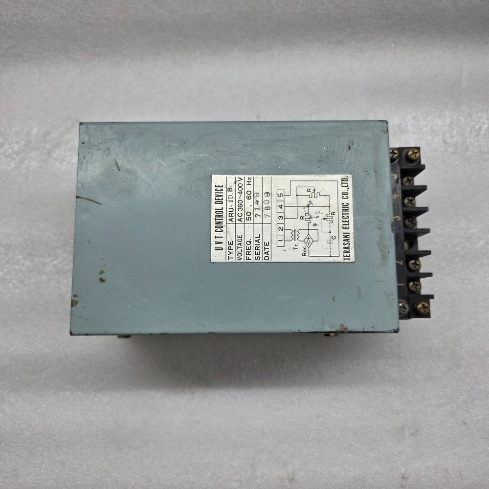 We are pleased to offer TERASAKI ARU-1DB UVT CONTROL DEVICE 360-400V Product Detail: TERASAKI ARU-1DB UVT CONTROL DEVICE 360-400V TYPE: ARU-1DB DESC: UVT CONTROL DEVICE VOLTAGE: 360-400V Shipment processing time: All orders are processed within 1-2 business days. Orders are not shipped or delivered on weekends or holidays. Shipment confirmation & Order tracking: You will receive a Shipment Confirmation email once your order has shipped containing your tracking number(s). The tracking number will be active within 24 hours. Customs, Duties and Taxes: We are not responsible for any customs and taxes applied to your order. All fees imposed during or after shipping are the responsibility of the customer (tariffs, taxes, etc.). Damages: In case of damage or lost of shipment during transit, We will investigate the matter and provide the satisfactory resolution. Returns Policy: We offer return or exchange of ordered item up to 30 days of receipt of goods in subject to certain condition. In case of damaged goods we shall offer the replacement or refund for the ordered item. If you require any more details, request you to send us the direct message through eBay for early resolution. Thanks
