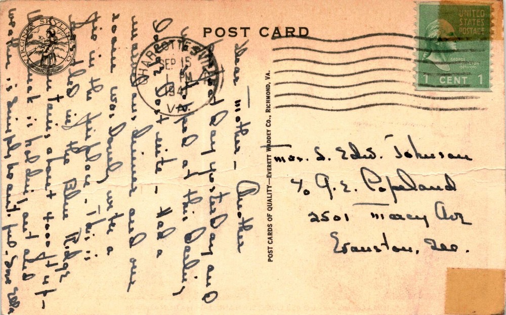 MAKE AN OFFER. THE MORE YOU BUY THE BETTER DEAL I WILL ACCEPT The postcard is a souvenir from the Terrace-Big Meadows Lodge in Shenandoah National Park, United States. The sender mentions spending a pleasant day at the lodge, enjoying a good meal and the lovely scenery. Shenandoah National Park is located in the Blue Ridge Mountains of Virginia and covers around 200,000 acres.