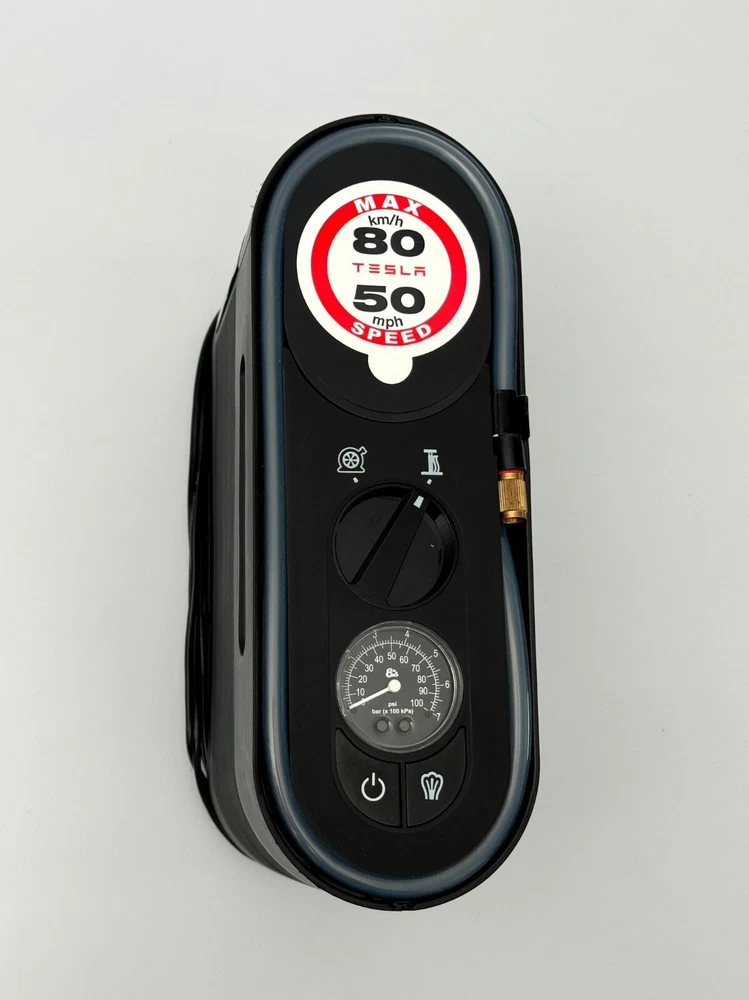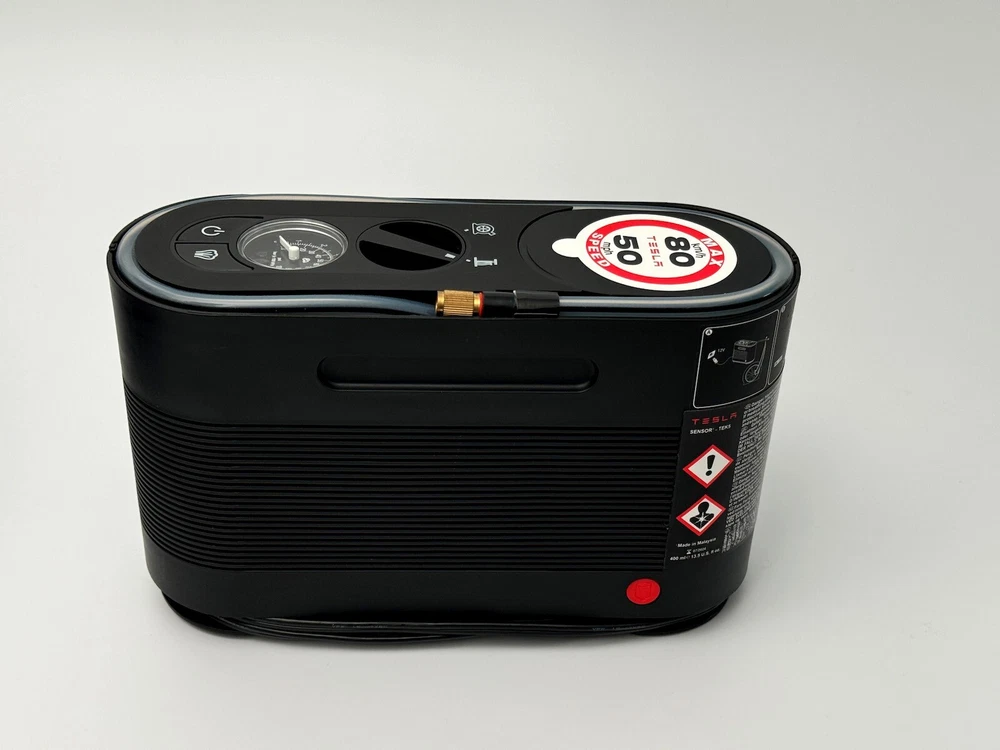 Excellent condition, fully functioning, pre-owned Tesla tire pump / repair kit. Has been used for inflating tires; repair function (foam) unused and intact. Comes with original carry case that has a velcro strip on the outside to stop it slipping around in your trunk. Ships same or next business day via USPS Ground Advantage (cheapest option).