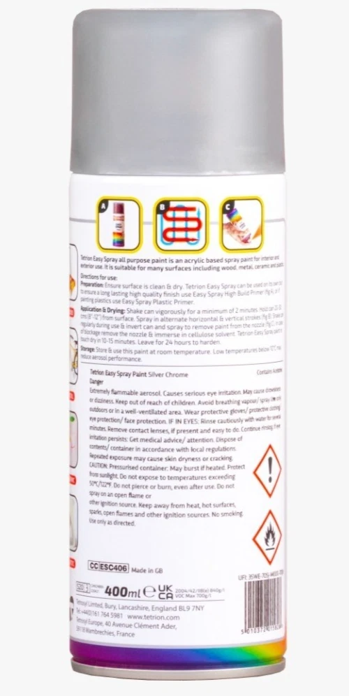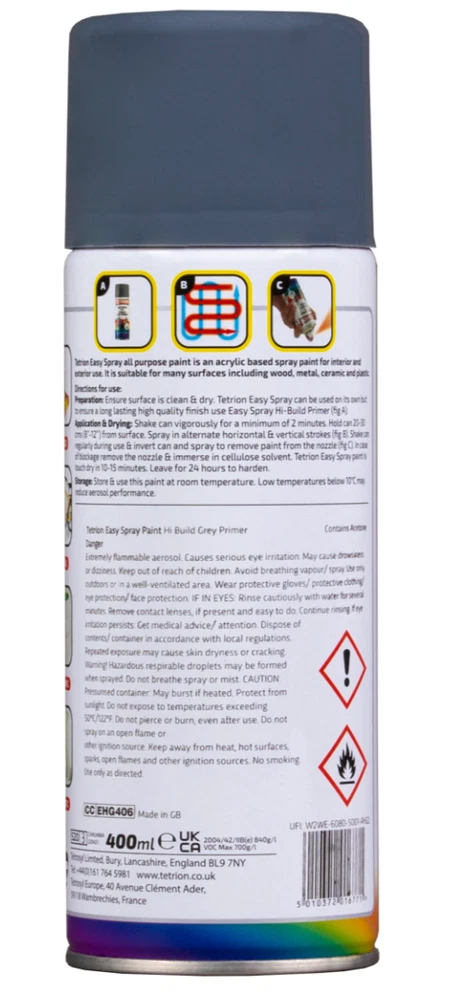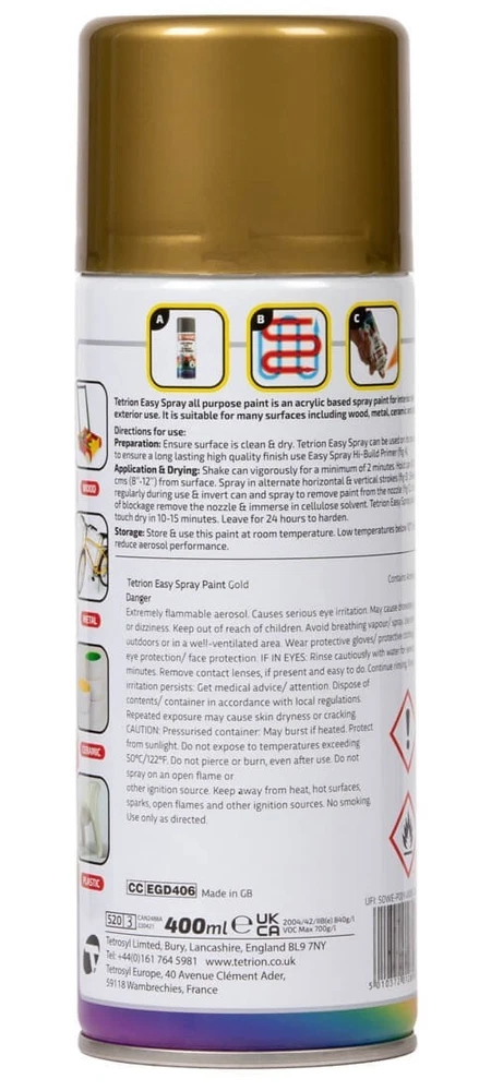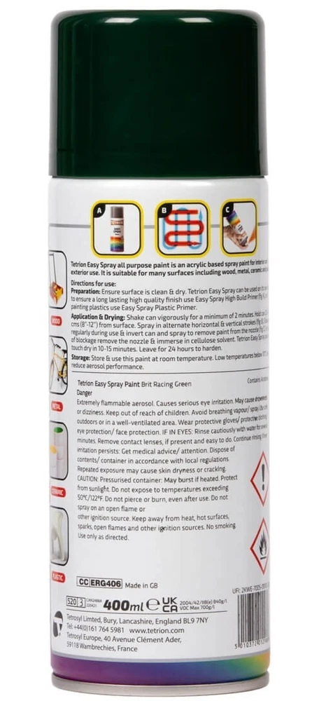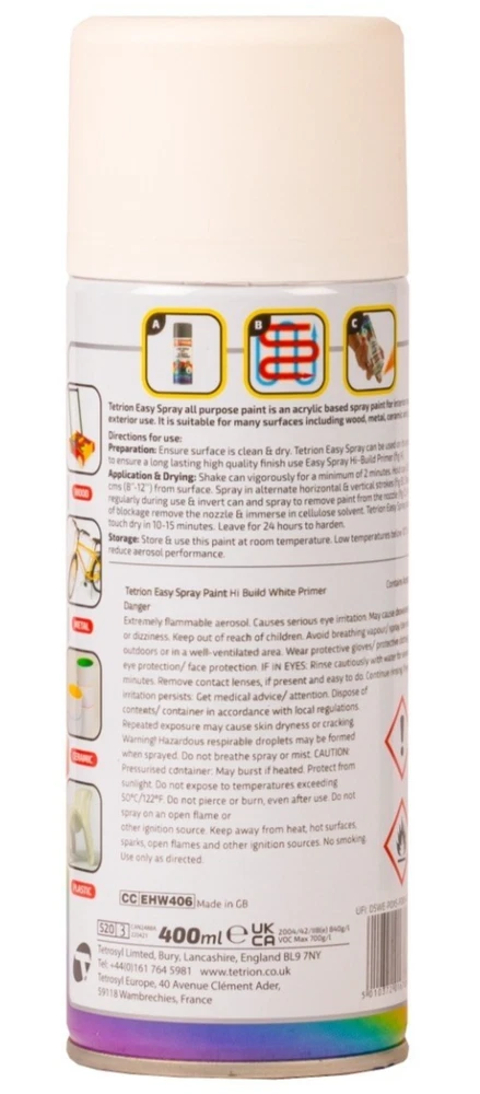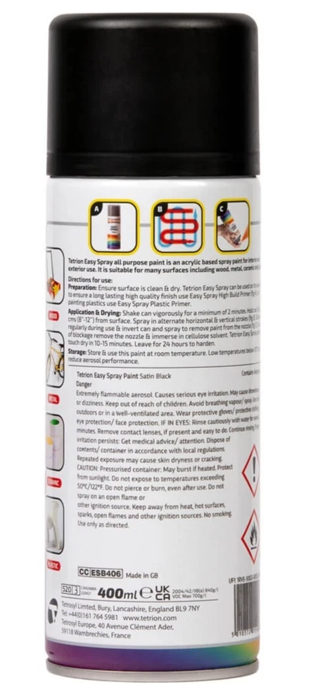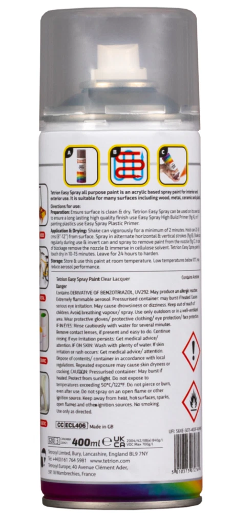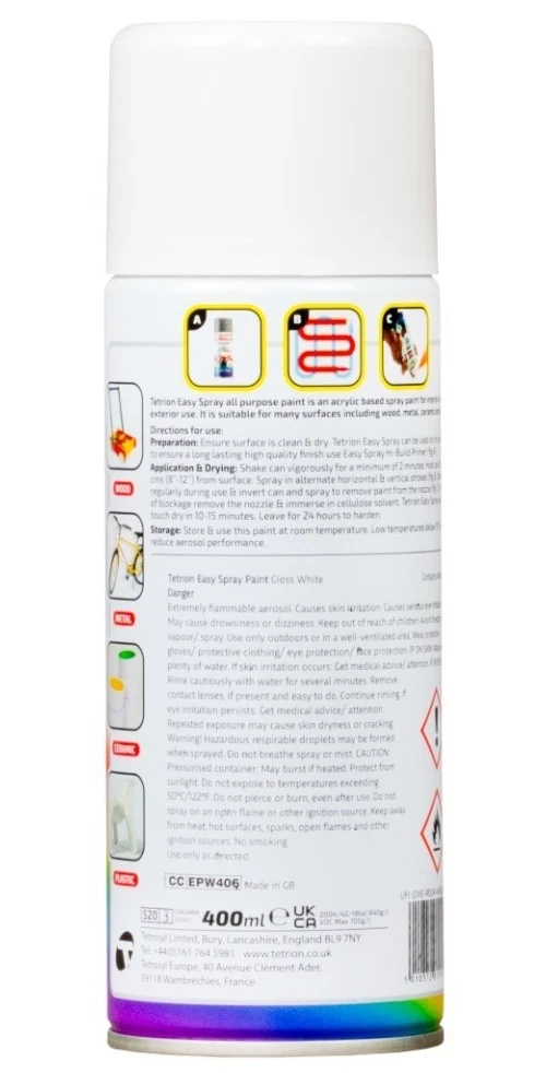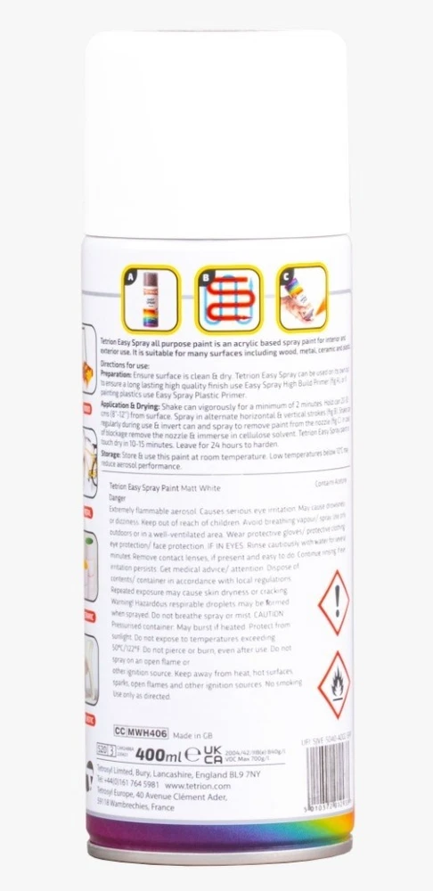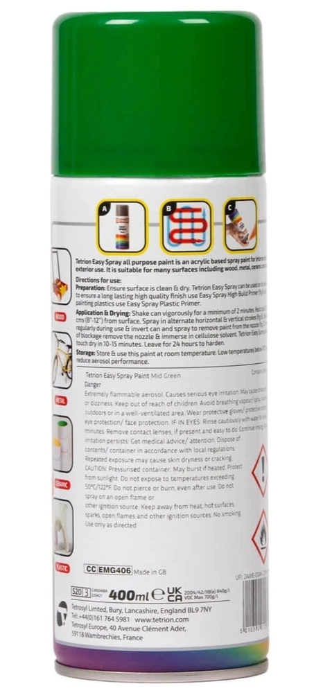 TETRION EASY SPRAY PAINT 400ML ACRYLIC BASED ALL COLOURS FOR METAL PLASTIC WOOD