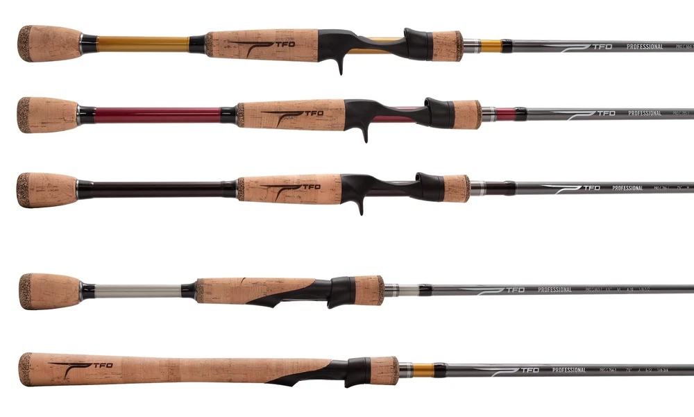 TFO’s redesigned Professional Rod Series is designed for the versatile angler of any skill level and is perfectly suited for a wide variety of species and environments. Highly durable, standard modulus, and moderate fast action blanks with powerful butt sections, come together to create one of the best values of any rod on the market. The Professional series continues to use the popular TFO color coded power system so you can quickly identify which action you are grabbing when the bite is hot. New down-locking reel seats with hidden threads for increased comfort, Fuji Concept O-ring guides, and cork grips all combine to give you a fabulous rod, safe for use in both fresh and saltwater. Full length grips on 7’ & 7’6” spinning rods, split grips on all remaining models. Every Professional series rod is designed and manufactured to deliver uncompromising performance and proven durability across a wide-range of fishing situations. And when combined with TFO’s full lifetime warranty against defects, these rods are the perfect choice for anglers wanting to insure their fishing success and enjoyment.