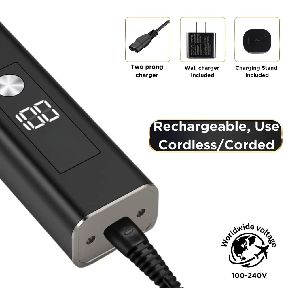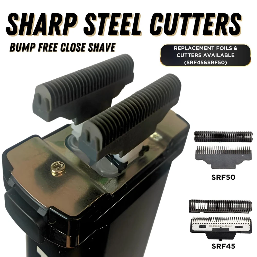 BARBER SHAVER: Pro Barber Shaver with 2 ultra-Thin Hair Foils (Made in Netherlands) & 2 Center Precision Cutters for longer hairs. Each Foil Contains our Special Aloe Vera Moisturizer Strip (SFA50) in the center which is replaceable & ensures a smooth touch after each shave. Our Hypoallergenic Foil’s are Made in Netherlands. LCD SMART BATTERY DISPLAY: 120 Minutes of Continued use with our Men electric Shaver. The Screen Displays Your battery Capacity, Travel Lock, Clogging Protection when its due for a cleaning. 5-Min Quick charge achieves one Shave. T-Fader has an Automatic 15 Minute Shut Off to Prevent Blades from Overheating & Burning Skin. CORD/CORDLESS TRAVEL RAZOR: Our Travel Razor is Cord/Cordless. You will receive a long Cord, USB Adaptor & A Charger stand which is compatible for worldwide Use. Travel Friendly 100-240V. WASHABLE PORTABLE ELECTRIC SHAVER: IPX7 Wet & Dry Function Allows you to Shave your face or Head with Lather, Foam, Gel or Shaving Cream. You Can easily Clean Your Foil Razor under the Faucet without worrying about Damaging your Close Shaver Electric Shaver. ACCESSORIES INCLUDED: You’ll Receive a T-Fader Li, Charging Stand, Cleaning Brush, Oil, 1.5M Extra Long USB Cable, Foil Guard. Everything you need for a User-Friendly Hair Shaver Experience. Several Cutters, Hair Foils & Aloe vera Strips are available for your Stubble Razor.