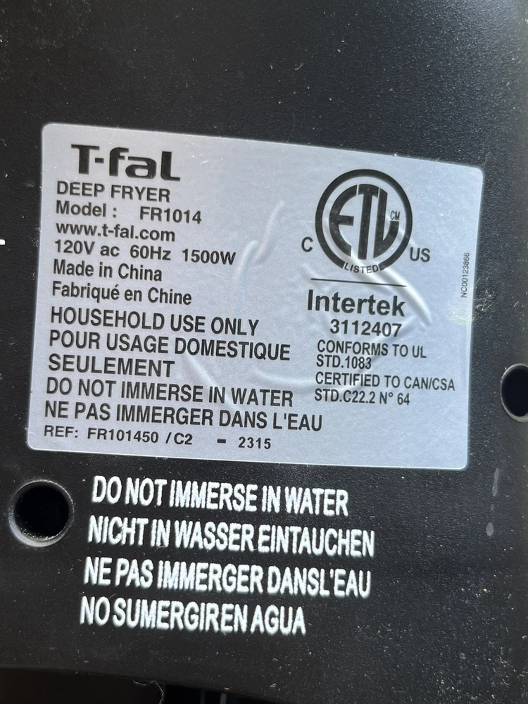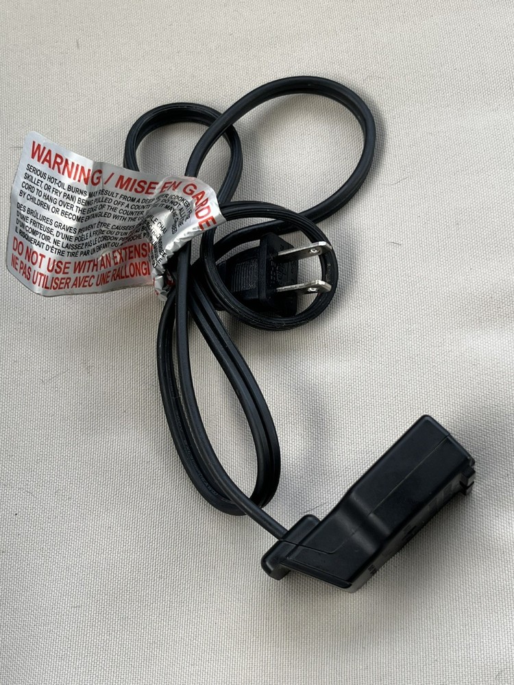 The T-Fal Deep Fryer Power Cord is a black magnetic cord designed for electric fryers. With a power source of 120VAC and a power of 1500W, this cord is compatible with the T-Fal Model FR1014. It is a reliable and efficient appliance cord. Cord only