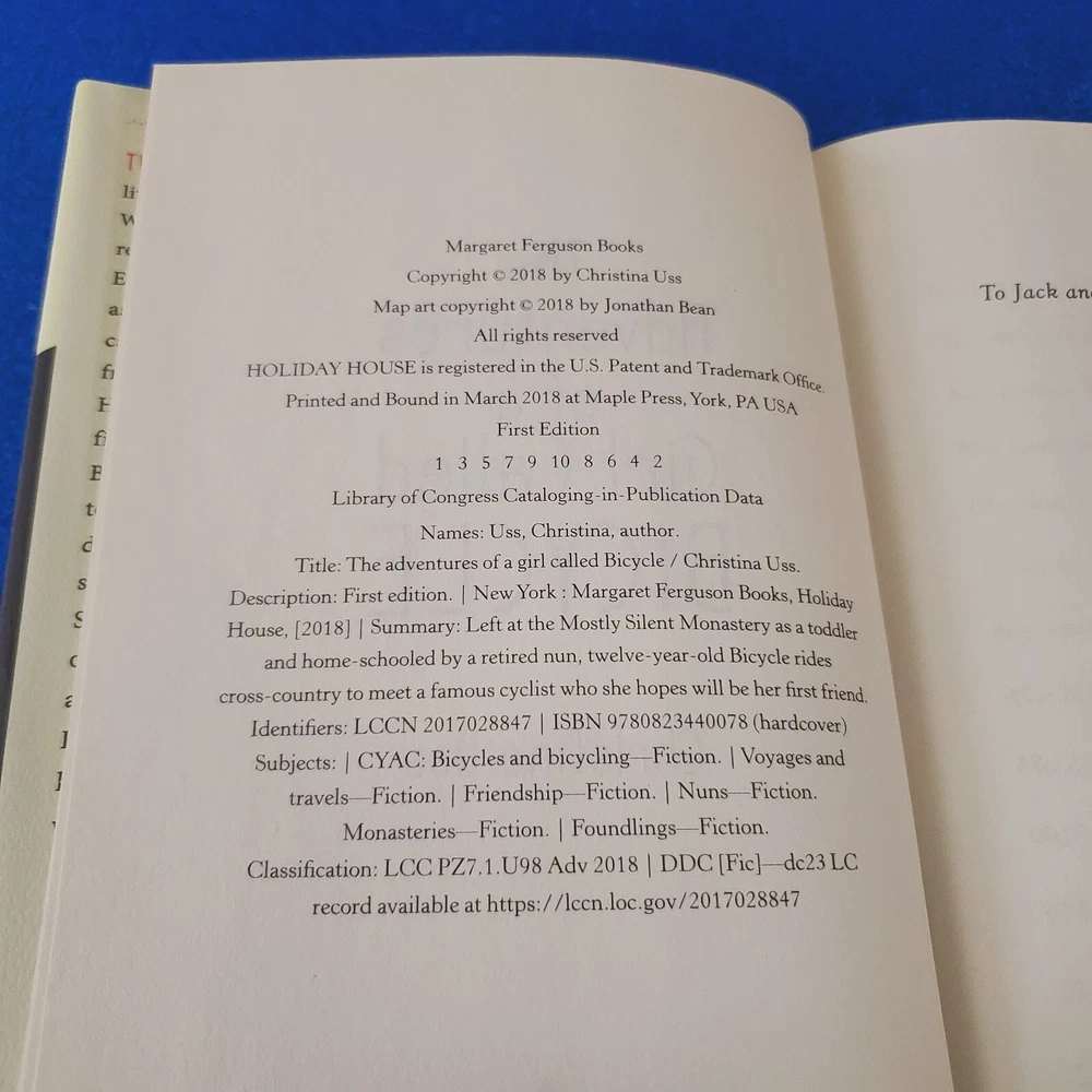 Vintage: No Topic: Travel, General, Sports & Recreation / Cycling, Family / Alternative Family, Social Themes / Friendship, Religious / Christian / General Format: Hardcover Original Language: English Language: English Book Title: Adventures of a Girl Called Bicycle Author: Christina Uss ISBN: 9780823440078 Narrative Type: Fiction Edition: Does Not Apply Item Weight: 14 Oz Genre: Juvenile Fiction Inscribed: No Literary Movement: Enlightenment Personalized: No Type: Novel Item Width: 5.9 in Book Series: Does Not Apply Personalize: No Illustrator: Yes Signed: No Ex Libris: No Publisher: Holiday House, Incorporated Number of Pages: 320 Pages Item Height: 1.3 in Item Length: 8.5 in Publication Year: 2018 Country/Region of Manufacture: United States gtin13: 9780823440078 Features: Revised