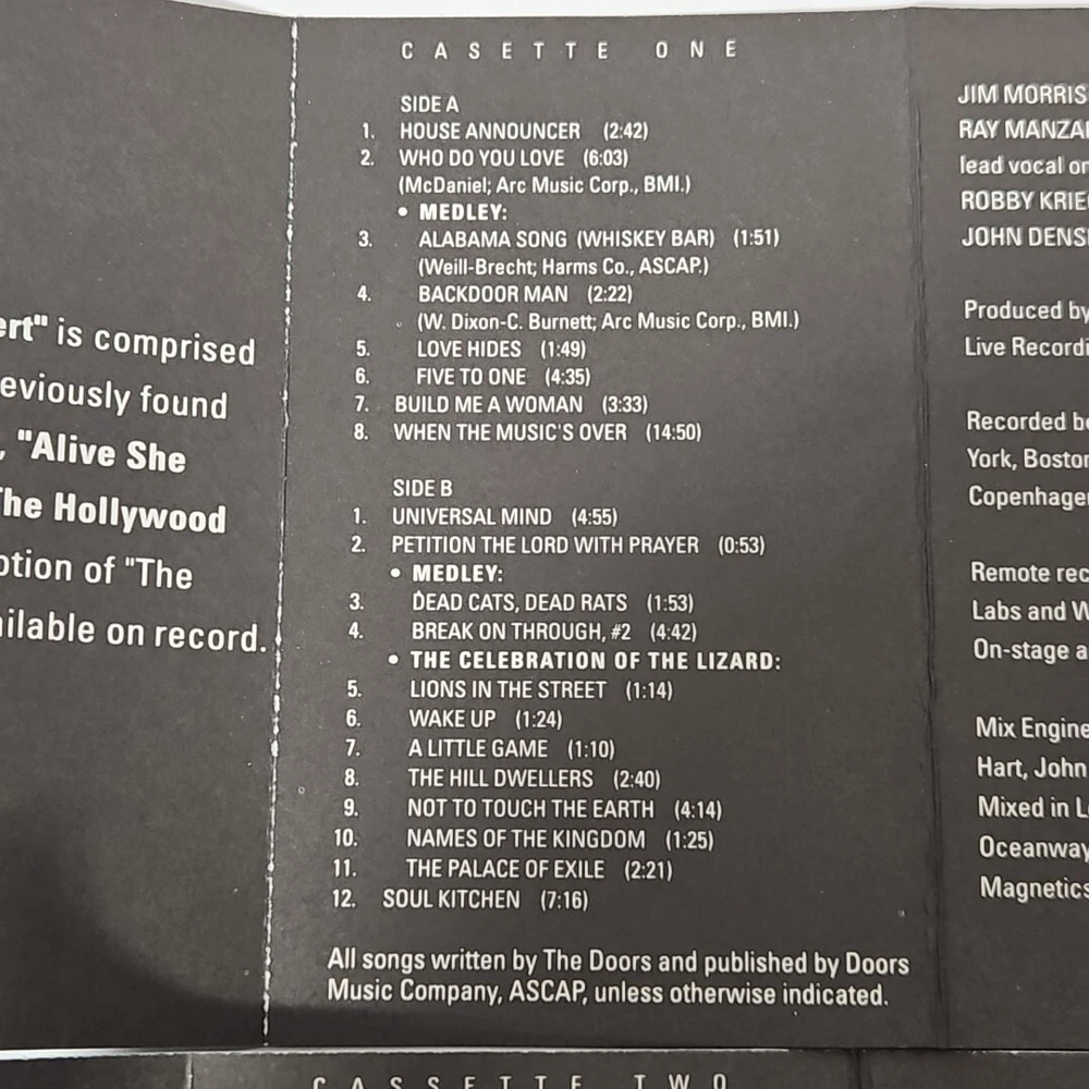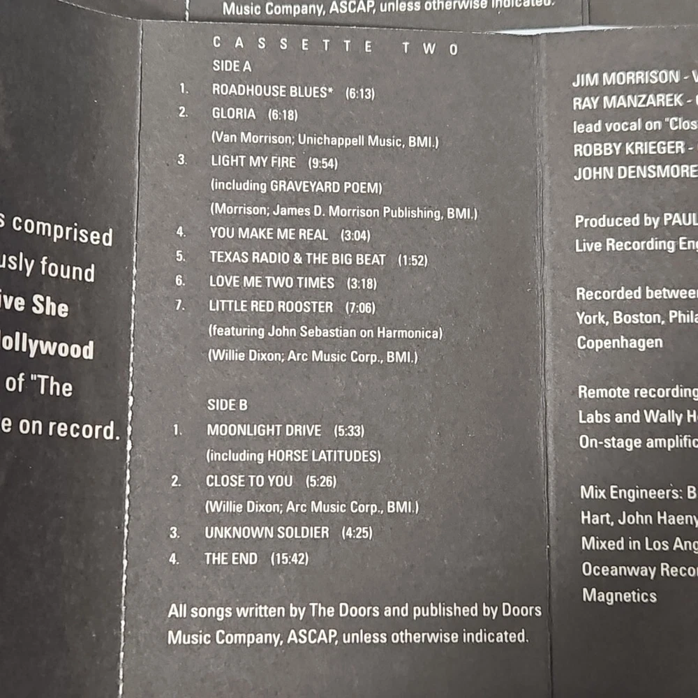 Very Good An item that is used but still in very good condition. No damage to the jewel case or item cover, no scuffs, scratches, cracks, or holes. The cover art and liner notes are included. Observe photos well for details. The Doors In Concert 2-Cassette Set is a must-have for every music lover. This 2-cassette set features the iconic band, The Doors, and their best live performances. You can hear Jim Morrison's raw and powerful voice, the mesmerizing sounds of Ray Manzarek's keyboard, Robby Krieger's guitar solos, and John Densmore's steady beat on the drums. Audio Tested: loud and clean sound. The cassette tapes and jewel cases are in Excellent condition. The cardboard slip cover is Good with some wear from handling and storage, Observe photos well for details. In Concert by The Doors (Cassette, May-1991, 2 Tapes Elektra (Label)) Music > Cassettes Format Cassette Release Year 1991 Genre Rock, Hard Rock, Rock & Pop Run Time 141 min. Style Hard Rock Artist The Doors Release Title In Concert Items are carefully inspected to the best of my ability. I store my items in a pet and smoke free home. I ship quickly and welcome all questions and offers. If you would like to order more than one item, send me an offer so I can do combined shipping & save.
