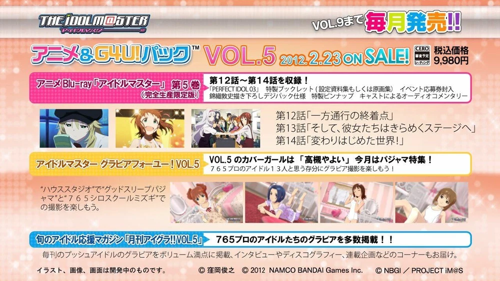 Thank you for visiting our page c11712n6vhUsed.VeryGood Detail THE IDOLM@STER Anime & G4U! Pack VOL.5 - PS3 form JP [ Condition ] Used.veryGood Product Description The Idolmaster Anime & G4U! Pack VOL.5 From Amazon [Anime & G4U! Pack VOL.5 bundled contents] 1: Anime Blu-ray "THE IDOLM@STER Volume 5" (Limited production edition) Episodes 12 to 14 included [Bundled bonus] Bonus: Vocal CD 3rd, event Application ticket, special booklet, etc. 2: "THE IDOLM@STER Gravure for You! VOL.5" The jacket is a monthly anime illustration! 3: The latest idol support magazine "Monthly Aigra! ! VOL.5” Contains many gravure pictures of 765 professional idols!! *Bundled with “Anime & G4U! Pack VOL.5” Anime Blu- ray "THE IDOLM@STER Volume 5" (Limited Edition) is the same as the Blu-ray "THE IDOLM@STER Volume 5" (Limited Edition) released by Aniplex. Contents and specifications The benefits remain unchanged. * Please note that "Anime & G4U! Pack VOL.5" will be sold at stores that sell games. *This product is a limited edition product. *Gravure for You! (G4U!) is not sold separately. All products in our shop are in Japanese. The language is the Japanese version. [ Brand ] BANDAI NAMCO Entertainment [ Release Date(yyyy/mm/dd) ] 2012-02-23 [ Note : Pre-Order (P/O) ] If title has "Pre-Order", we will ship out as soon as released. We want all buyers to understand there is possibility that the manufacturer will change contents, date and quantity for sale. [ Country of Manufacture ] If "Made in Japan" is NOT described on whole listing page, Items are manufactured in other country (China, Vietnam and etc.). [ Manual & Menu Language ] We treat Japanese Market Usage Items. So items have only Japanese Manual & Menu Language. Please contact us if you would like to know more details. *Japanese Menu Only : Panasonic Camera *English Menu available : Nikon, Canon [ Warranty ] Japanese Warranty Only. Buyers need to send item to us in Japan to repair with warranty & own all shipping cost. If you need to repair item in your country with warranty, please do not order this item. [ Electronics ] Japan Usage Item. Voltage:100V, Plug :Type A, FM Tune:70-90MHz Please check your country's condition for use. [ Multiple sizes and colors ] Before your payment, please contact us about stock of size & color. Payment [ International Buyers - Please Note ] - Import duties, taxes and charges are not included in the item price or shipping charges. These charges are the buyer's responsibility. - Please check with your country's customs office to determine what these additional costs will be prior to bidding/buying. - These charges are normally collected by the delivering freight (shipping) company or when you pick the item up. Please do not confuse them for additional shipping charges. Please pay within 3 days after your purchase. Shipping [ Method ] level country service name speed track number standard worldwide AIRMAIL about 2~3 weeks yes expedited worldwide DHL or FEDEX about 1 ~2week yes [ Shipping Address ] We ship to only address where be registered by ebay. If your address is in a remote area, you will need to pay an additional shipping fee. [ Other Carrier ] We can arrange shipment by DHL and fedex and jp post. Everything comes with a tracking number. We will send you a tracking number once we ship. Please ask us about Handling Time and Price. [ Combine shipping & Large Quantity ] Please contact us for combine shipping & large quantity deals before payment. We do our best for you!!!!! [ Order Processing & Handling Time ] Your order will be shipped within 5~7 business days (excluding Saturday, Sunday & Japan's Holiday) after the payment is confirmed. [ Compensation & Insurance] When you choose EMS, in order to receive compensation, it is necessary to open the box and check your item with delivery staff at the time of delivery. If you don't do that, you may not receive compensation and new item from us even if your item is damaged and lacked. [ Li-ion Battery ] Some countries( Germany,France,Italy,Mongolia,SriLanka,Turkey,Nigeria and more.) does not accept lithium battery via EMS, SAL by Post Office. Please check your country's rule yourself. If we receive order from buyer who located in these countries, we will ask buyer to choose 1 from 3. 1. Ship without Ri-ion Battery removed from item. 2. Change shipping method to Fedex or DHL with additional shipping cost. 3. Cancel