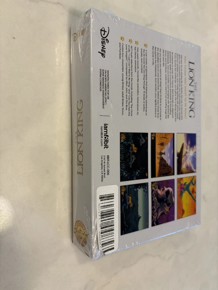 🚨SOLD OUT CAN NO LONGER BUY🚨 RARE ✨✨✨LIMITED TO 2000 in the World 💛💛💛 BRAND NEW SMOKE FREE HOME COLLECTORS PIECE 🦁🦁🦁🦁The product is a rare Nintendo SNES Legacy Cartridge Collection featuring The Lion King game, published by Nintendo in 2020. This limited edition collection is region-free, allowing it to be played on any Nintendo SNES console worldwide. With only XXXX out of 2000 units sold, it is a highly sought-after item for collectors and fans of classic video games.