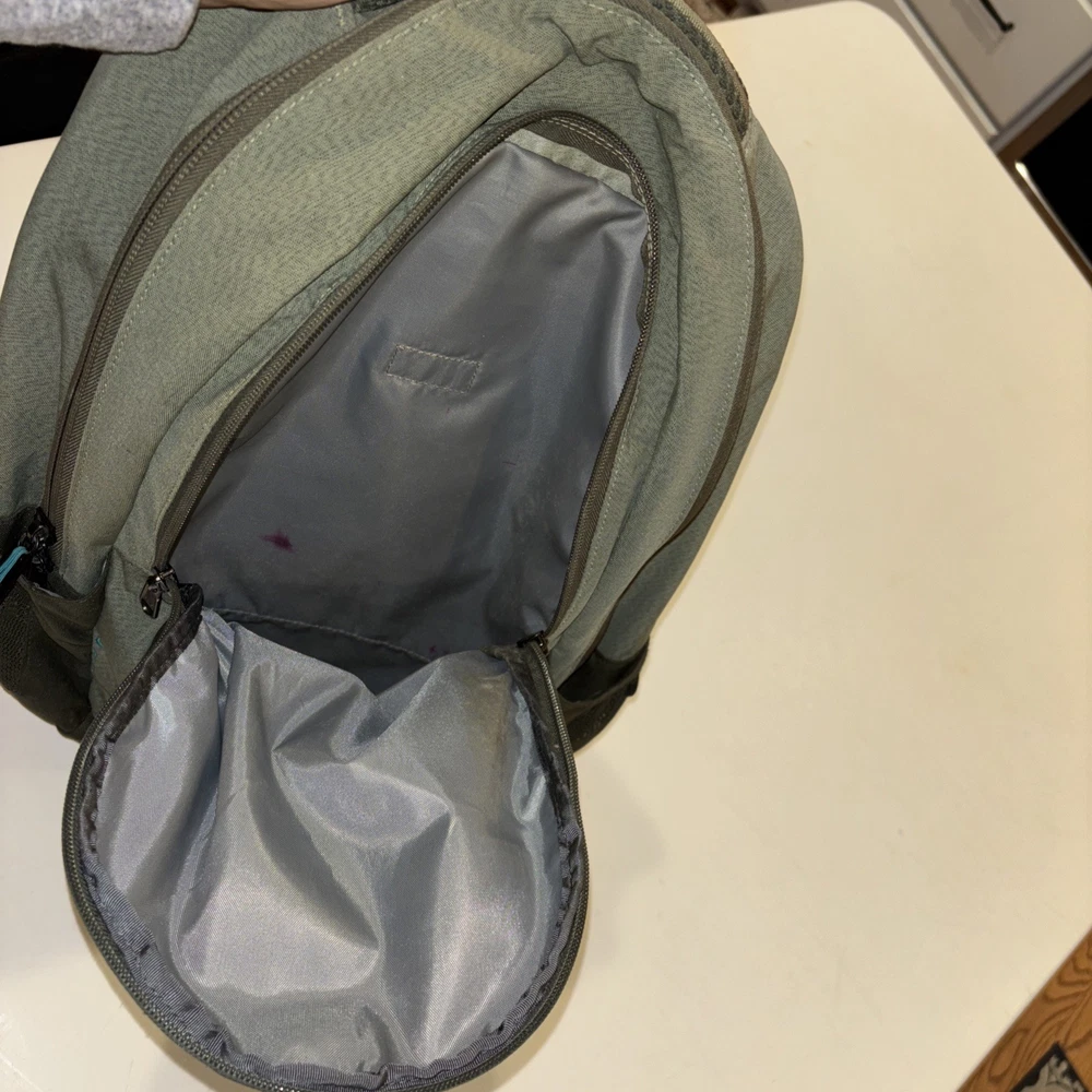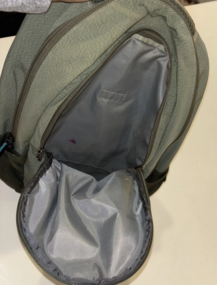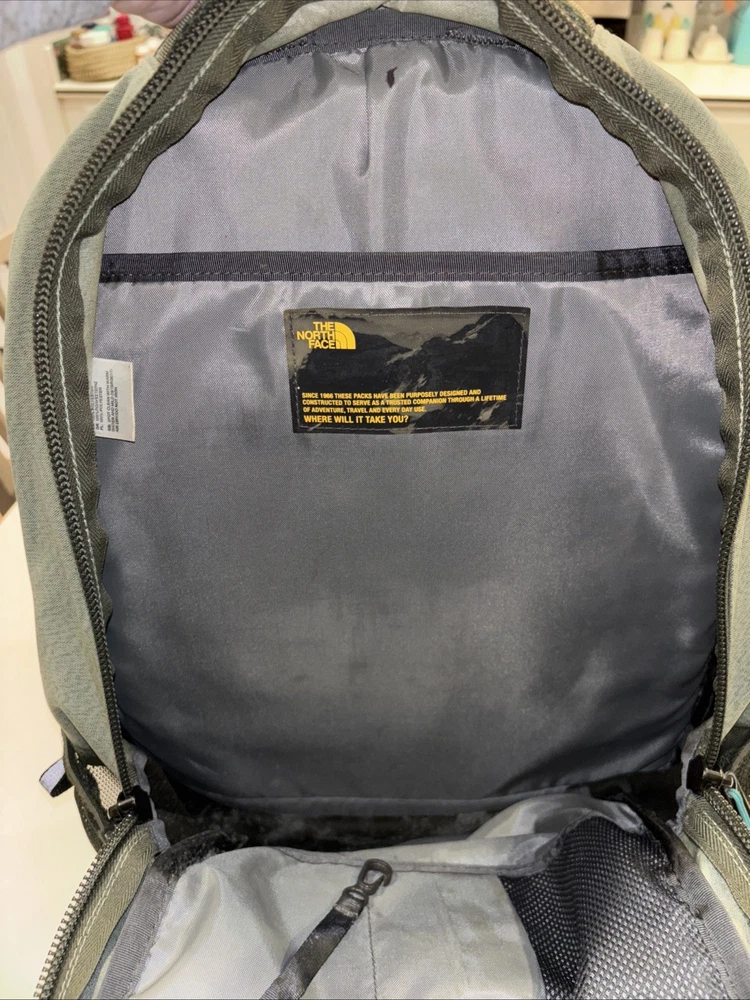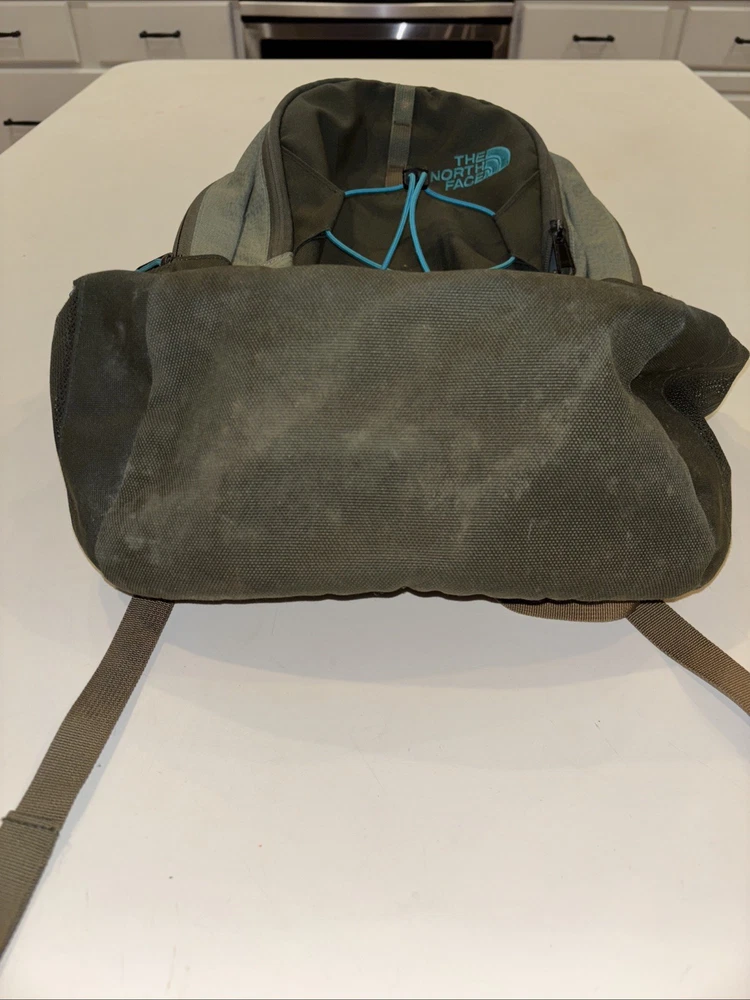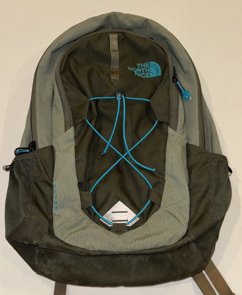 The North Face Vintage Basic Logo Jester Backpack in Olive Green/Teal is a medium-sized shoulder bag suitable for unisex adults. Made of durable polyester material with a nylon frame, this backpack features a zip closure and a divider system with two compartments and more than 8 pockets. It also includes a laptop compartment, padded straps, and external pockets for added convenience. Perfect for backpacking activities, this lightweight backpack is easy to clean with a damp cloth and is a stylish and practical choice for outdoor adventures.