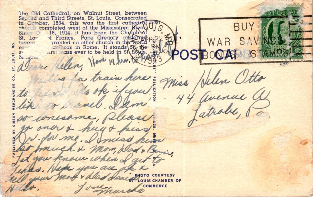 MAKE AN OFFER. THE MORE YOU BUY THE BETTER DEAL I WILL ACCEPT The front of the postcard features a picture of the Old Cathedral in St. Louis, Missouri. The cathedral, located on Walnut Street between Second and Third Streets, was consecrated in October 1834, making it the first cathedral completed west of the Mississippi River. Since 1914, it has been the Church of St. Louis of France.