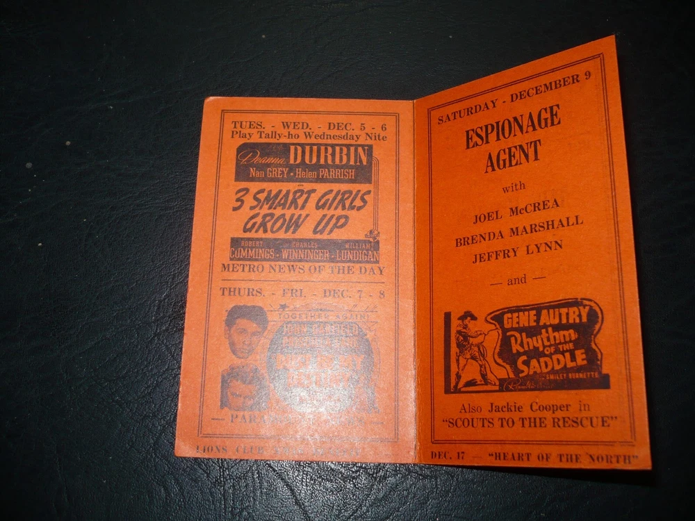Offered is an original folded movie ad flyer from the haunted Strand Theater [3 1/2" x 5"] in Skowhegan Maine. The undated 1930's item, on heavy paper stock, has normal wear. Images are attached. If the link is ineffective or if you have any questions, please email. All sales are fully guaranteed. Good Luck!! If you are the winning bidder and live outside the U.S., please wait until after you receive a congrats notice before sending payment. Other shipping and payment options are available. For those of you who live in a country which has the euro, I possess a bank account in a euro country and prefer IBAN/BIC payments. Wenn Sie ein meiner Auktion auf der USA Site gewinn, koennen Sie per Ueberweisung bezahlen. Ich wohne in Amerika aber habe ein deutsches Bankkonto. Achtet auch auf meine anderen Auktionen, um Versandkosten zu sparen.
