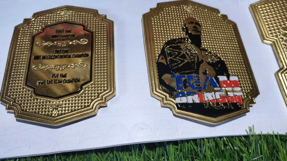 Welcome to our shop ------------------------------------------- We are specialist in manufacturing handmade products:: Our wide range of products include: >>>>Championship Belts WWE | WWF | AEW | UFC | WBC | WCW Product Description PICTURES ARE OF 4MM ZINC *** THE ROCK BRAHMA BULL WRESTLING CHAMPIONSHIP BELT *** Plate Metal: Brass (Zinc available on request with additional cost) Strap: 100% Leather Largest Waist Size: Fits upto 46'' Belt Length: ~50" Weight: 6.17 lbs | 2.81 Kg Plate Thickness: 2mm (4mm Version available on demand with additional cost) ::The belt is well crafted and manufactured to meet the quality demands of fans:: Get your hands on this marvelous piece now! Note: If you need further details kindly inbox us, we will try to be as responsive as possible. ------------------------------------------- Return Policy: Generally we don't have much complains on our products and we make sure to 100% satisfy our clients. We send the product in well Bubble Wrapped packaging so there is highly unlike chance of getting damaged item. In case there is a damage, we will try to give partial refund or you can ask for full refund within 30 days after returning the belt to origin. NOTE: 1. If you have placed the order by mistake or you have purchased a wrong item then we are not going to refund that. 2. Buyer will pay the shipping fee of returning the belt. ------------------------------------------- Happy Shopping! :)