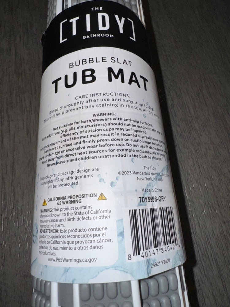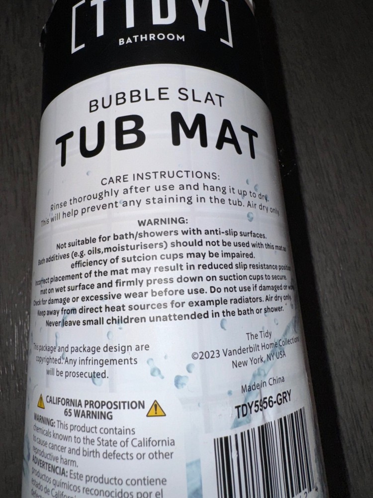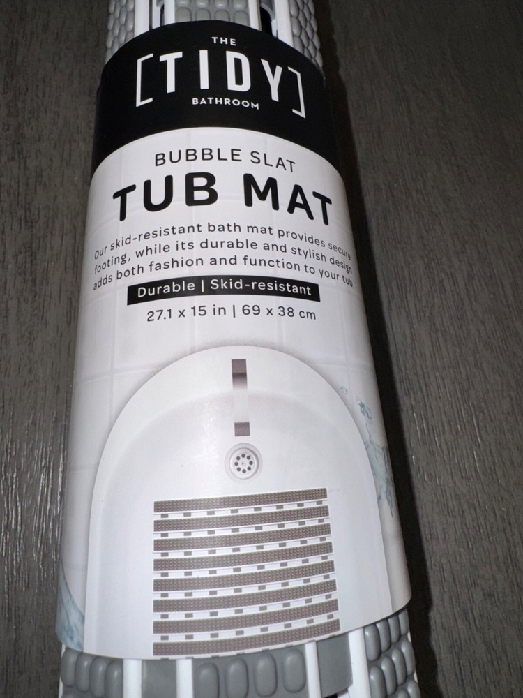 THE TIDY BATHROOM BUBBLE SLAT TUB MAT GREY 27.1X15 IN / 69X38 CM