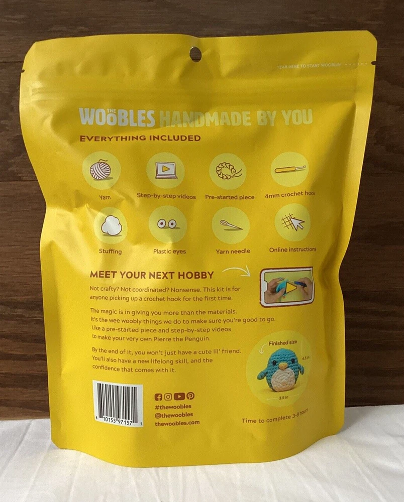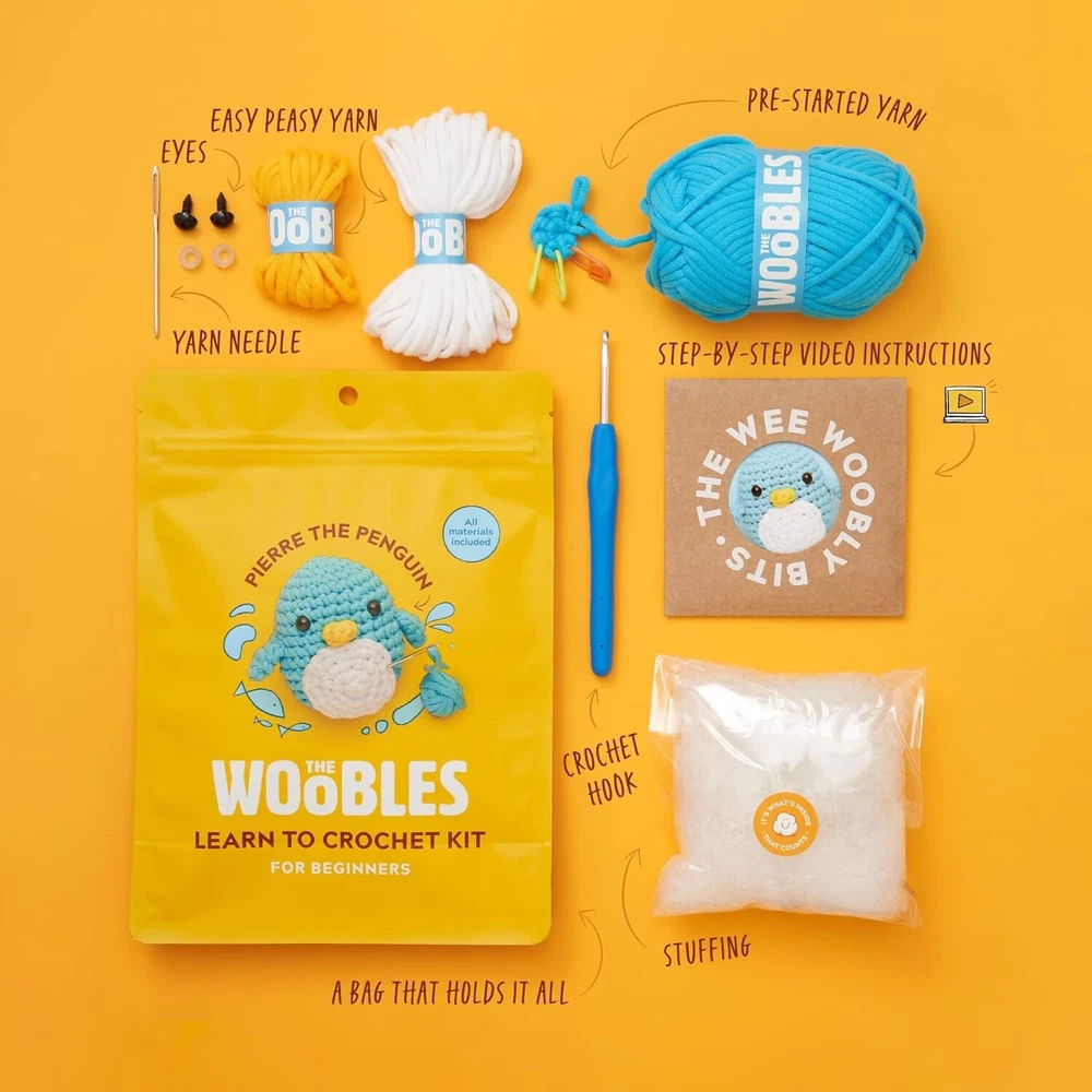 THE WOOBLES PIERRE THE PENGUIN Learn To Crochet Kit for Beginners NEW