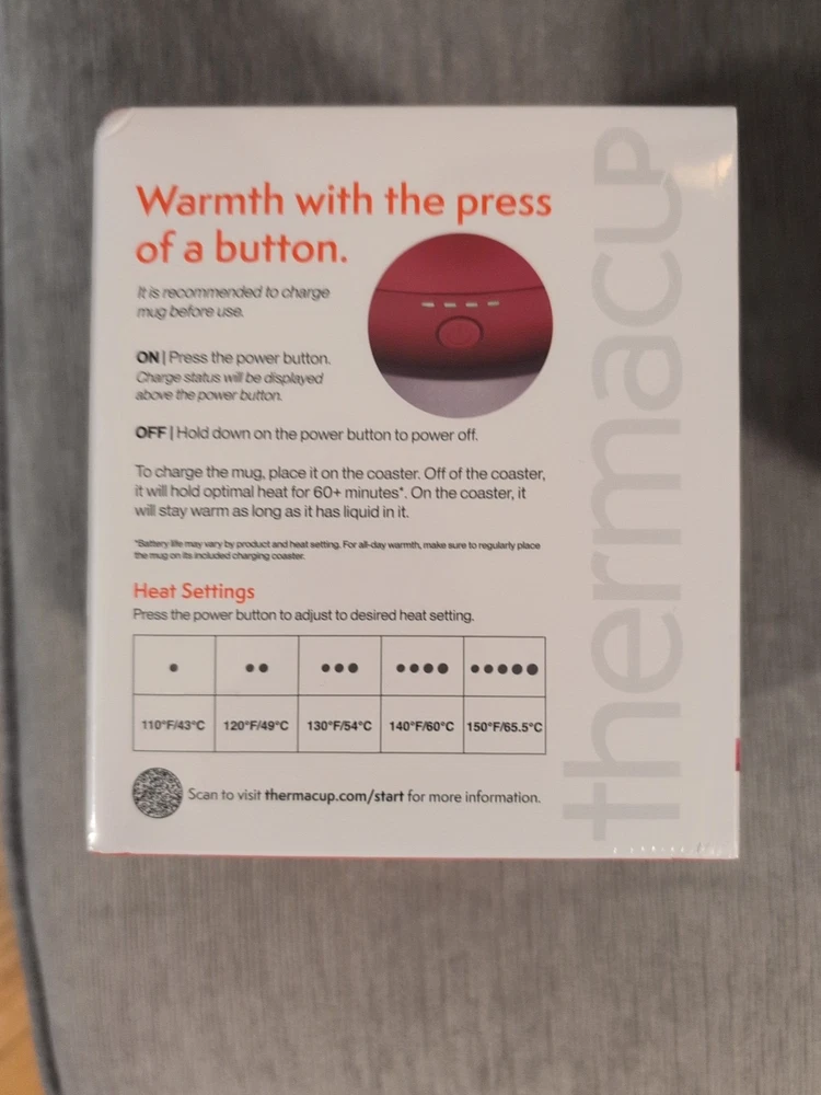 THERMACUP Premium Self-Heating Coffee Mug with Lid •12 oz •Cherry Red NIB (3404). Condition is New. Shipped with USPS Ground Advantage.