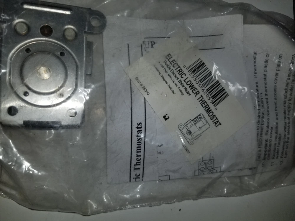 Brand:ZEROType:Water Heater ElementTHIS THERMOSTAT IS::FOR DOUBLE ELEMENT ELECTRIC WATER HEATERVoltage:120 V / 480 VACGENUINE BRAND NAME:ZEROModel:SKU # 26359