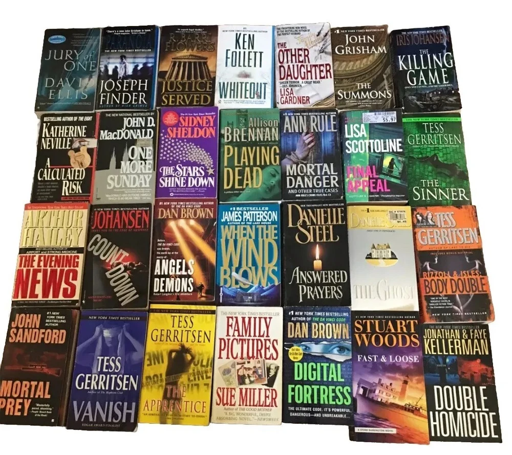 Box of 18 THRILLER paperback books from bestselling authors. The books are Very Good or Good.. PHOTOS ARE SAMPLES, YOUR LOT MAY DIFFER AS I HAVE ENORMOUS QUANTITIES OF PAPERBACKS