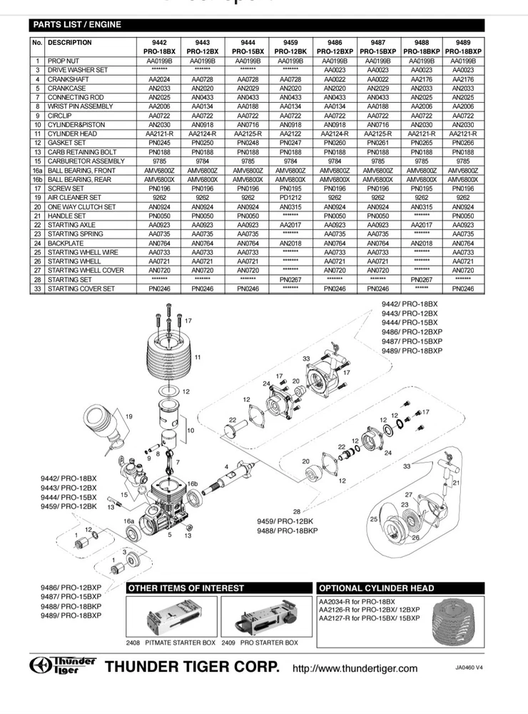 PLEASE VISIT MY STORE BELOW https://ebay.us/m/31Lp5o THUNDER TIGER PRO 18 BKP, THUNDER TIGER PULL START KIT INCLUDING SCREWS, ALL NEW COMES IN BOX BUT THERE ARE NO PAPERS JUST THE BOX. PLEASE SEE PICS FOR ALL ENGINE DATA