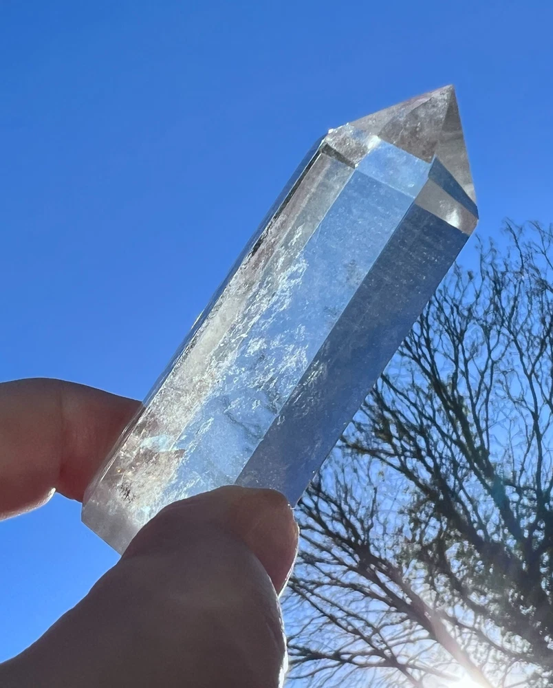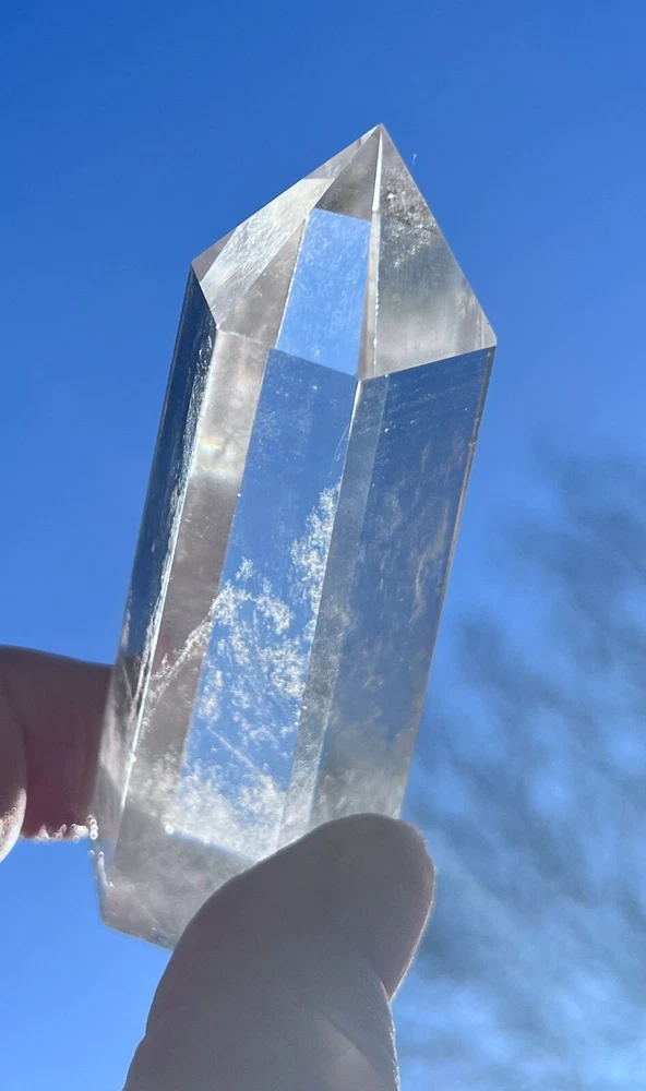 VERY CLEAR FINE QUALITY. SPECIAL Tibetan High Altitude Quartz Crystal POINT from the GANESH HIMAL MOUNTAIN TIBET. 3.4 inches tall x 1.3 inches wide . Weight 115 gms. *************************** HIGH ALTITUDE TIBETAN QUARTZ CRYSTAL This high altitude Tibetan quartz crystal point was hand-harvested from a family-owned mine. Before the family can even consider crystal harvesting, they must ask permission of the mountain. If the mountain says “No” then they freely release the idea. If the mountain says, “Yes” then they offer thanks, blessings and rituals and begin the hand harvesting of the crystals. It is a 10 day trek to reach the remote location where these very special Tibetan high altitude Quartz Crystals are found and the snow covered passes are only open for a short time during the warmer months. There is a huge difference in the inner power vibration and the energy of this high altitude Tibetan Quartz crystal point and normal quartz. It is very high and spiritually powerful and pure, yet still deeply connected to the resonances of the earth. You can feel both aspects of the divine energy as well as the earth energy, it is an amazing and very unusual experience! This Tibetan high altitude crystal was honoured before it was ever mined. The miners hand harvest the crystals with deep respect to the mountain and the crystals. Tibetan high altitude quartz crystal is expensive but considering the amazing high quality, the huge inner power, the care and reverence that has been given to the earth and the crystal, as well as the altitude and distance it has travelled, it is truly a rare treasure. Nature can bring tremendous healing and energy to our lives, this rare Tibetan high altitude Quartz Crystal point has been charged with the sacred energy of the Himalayas for millions of years and are truly a gift to those that receive them. This is a very rare Tibetan high altitude quartz crystal point. The quartz crystal is hand mined high in the mountains of Tibet and is carried down the mountainside by backpack. Tibetan crystals are for protection. Just having a Tibetan high altitude crystal close to you puts up an automatic shield against negative energy. It also helps shield you from other people's negative energy. It is very difficult to acquire REAL Tibetan high altitude quartz. The family that collects the quartz will only deal with people that they know and trust. I am sorry but real Tibetan high altitude quartz crystal from the Ganesh Himal mountain range is expensive.There is a huge difference in the inner power vibration and the energy of this Tibetan high altitude quartz crystal and ordinary quartz crystal. Tibetan high altitude crystal is very high and spiritually powerful and pure, yet still deeply connected to the resonances of the earth. You can feel both aspects of the divine energy as well as the earth energy, it is an amazing and very unusual experience! This Tibetan high altitude quartz crystal was honoured before it was mined. ************************************** This TIBETAN HIGH ALTITUDE QUARTZ CRYSTAL can be used for many healing purposes. This Tibetan high altitude quartz crystal point brings knowledge and information concerning healing and spirituality. Both healing and meditation have been enhanced. This REAL Tibetan high altitude quartz crystal point can induce total centring of the self and can produce a huge spiritual energy which is important for self channeling. This Tibetan high altitude crystal point contains a very special "OM" vibration which your body can attune to with the special resonance and you will be able to radiate special high power energy and be more in tune with your higher self. ********************************* This is a very special true and real Tibetan high altitude quartz crystal point With this crystal you will be able to amplify both your body energy and your thoughts. This crystal point when held will help you in the creation of inner body power and will bring the energy of the stars into your soul. This is a true real Tibetan high altitude quartz crystal and is a STONE OF POWER and HEALING. When you hold this sacred crystal point and meditate with it you will be in tune with yourself and be able to speak with and communicate with spiritual and other worldly masters, teachers and healers. A Tibetan high altitude crystal such as this can be used to clear and to activate your energy centers, it provides for purification of the physical, mental and your spiritual mind. It will help you in healing any negativity that is in you. This Tibetan quartz crystal point will help direct your "body energy" and will help to banish all inner negativity and will stimulate your positive energy with special thoughts and feelings. This sacred crystal when held and cherished will direct your energy into the higher spiritual realm. Tibetan high altitude quartz crystal induces amplification of you own special energy field, it can and will produce a huge force field of healing negative ions and will clear the area of positive ions which can harm you and your loved ones. This Tibetan crystal point is a huge amplifier and transformer of energy, your smallest thought will be immediately enlarged by this sacred crystal. IT IS NOT THE CRYSTAL WHICH WILL DO THE WORK BUT IT IS YOU WHO WILL HOLD IT AND IT IS YOU WHO WILL CHANNEL YOUR WILL TO HEAL AND TO HOLD THE EXTRA POWER. You can meditate with this Tibetan crystal. You can hold it and you will be in tune and at one with this special power crystal. ************************************************** This is a sacred blessed real Tibetan high altitude quartz crystal that has been sourced by Spiritual-Sky. This blessed Tibetan high altitude crystal is full of great spiritual power. The reason for the release of this sacred blessed crystal is that the world is now a dark and dangerous place and we would like spiritual and sacred people to be part of the new awakening. This rare Tibetan high altitude crystal has a HUG