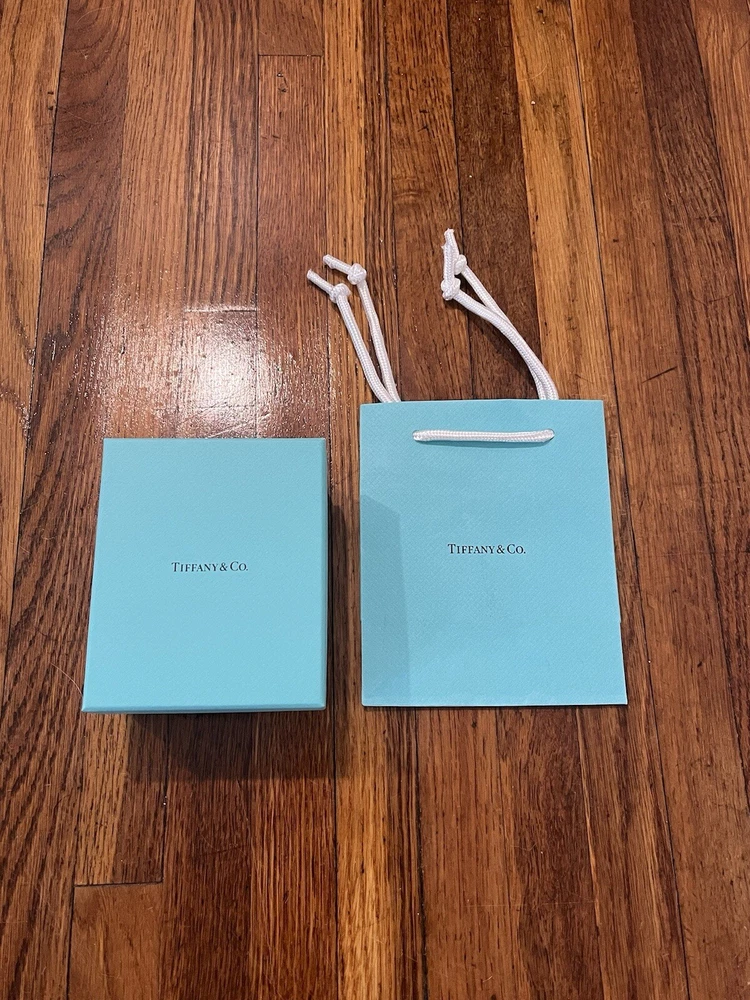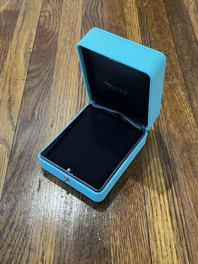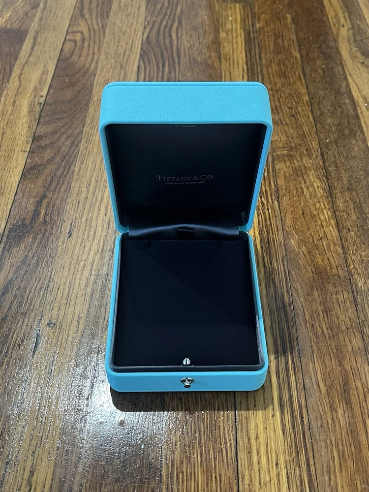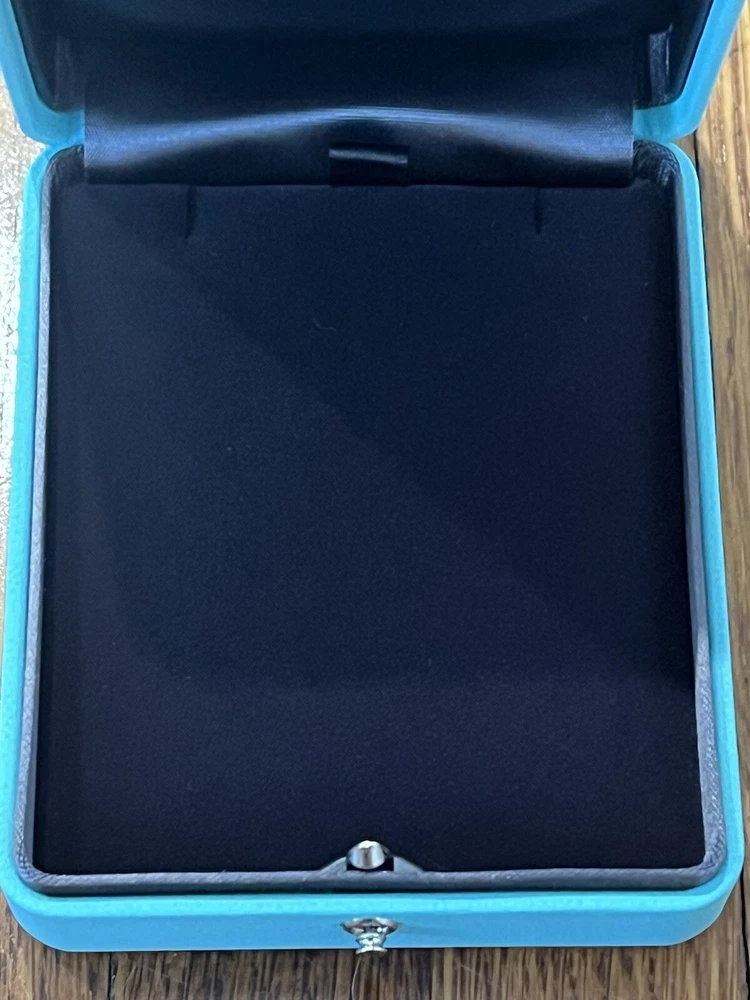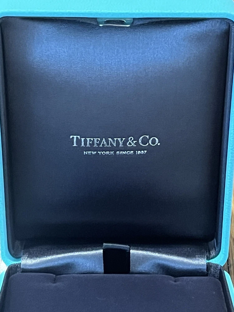 TIFFANY & CO. BLUE LEATHER NECKLACE/PENDANT BOX, CASE, AND BAG ALSO COMES WITH TIFFANY BROWN BOX EXCELLENT CONDITION — LIKE NEW