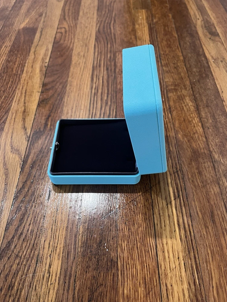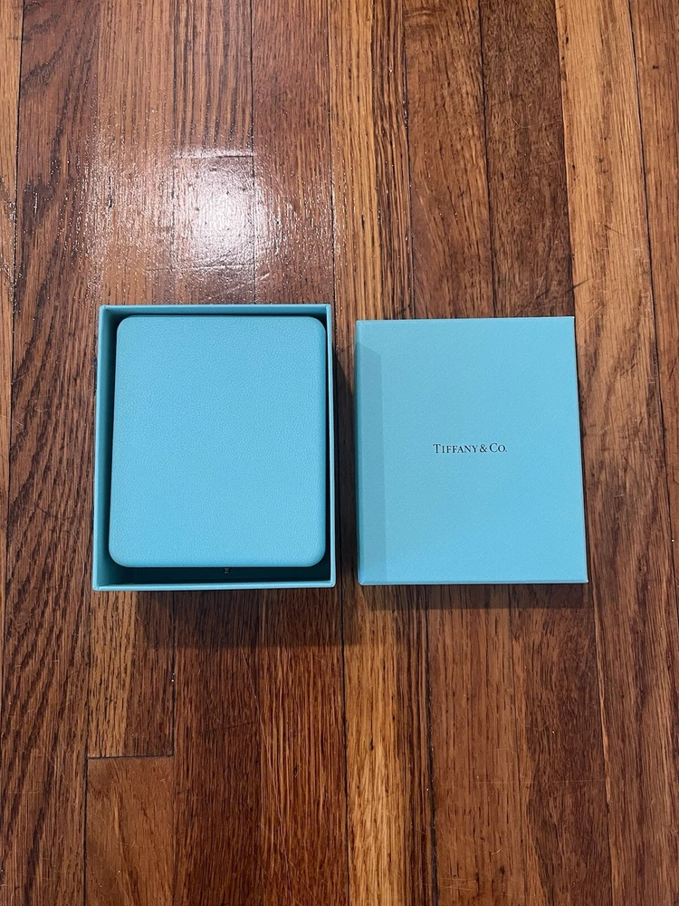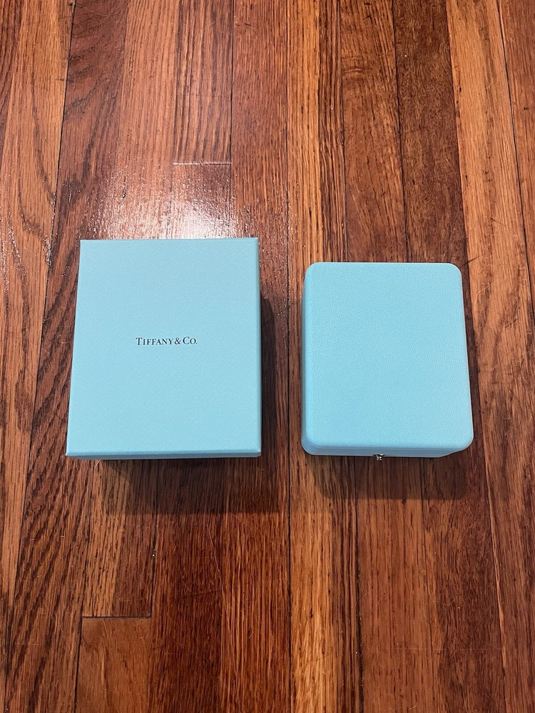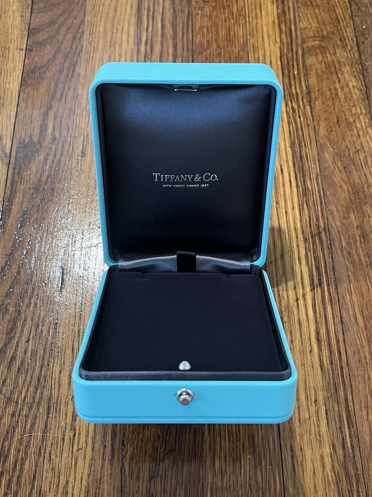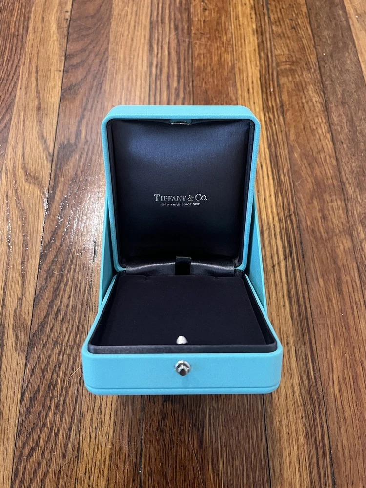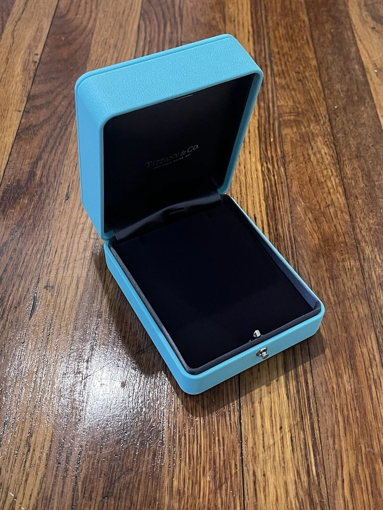 TIFFANY & CO. BLUE LEATHER NECKLACE/PENDANT BOX, CASE, AND BAG ALSO COMES WITH TIFFANY BROWN BOX EXCELLENT CONDITION — LIKE NEW