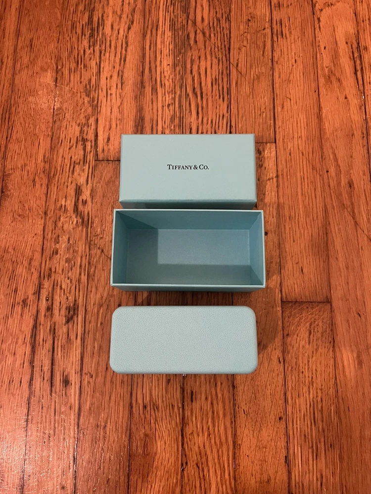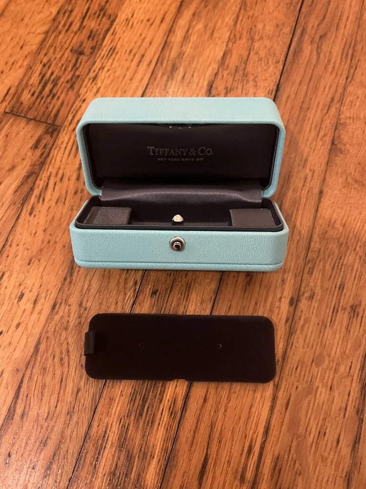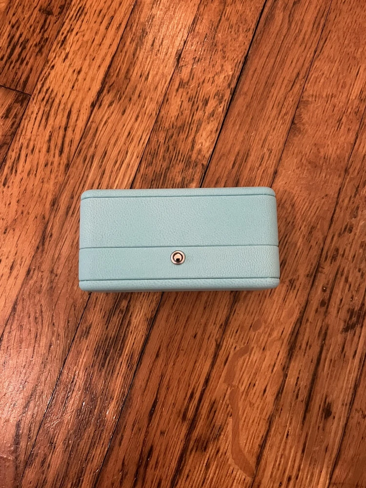 TIFFANY & CO. STUD EARRING CASE AND BOX BLUE LEATHER USED - EXCELLENT CONDITION