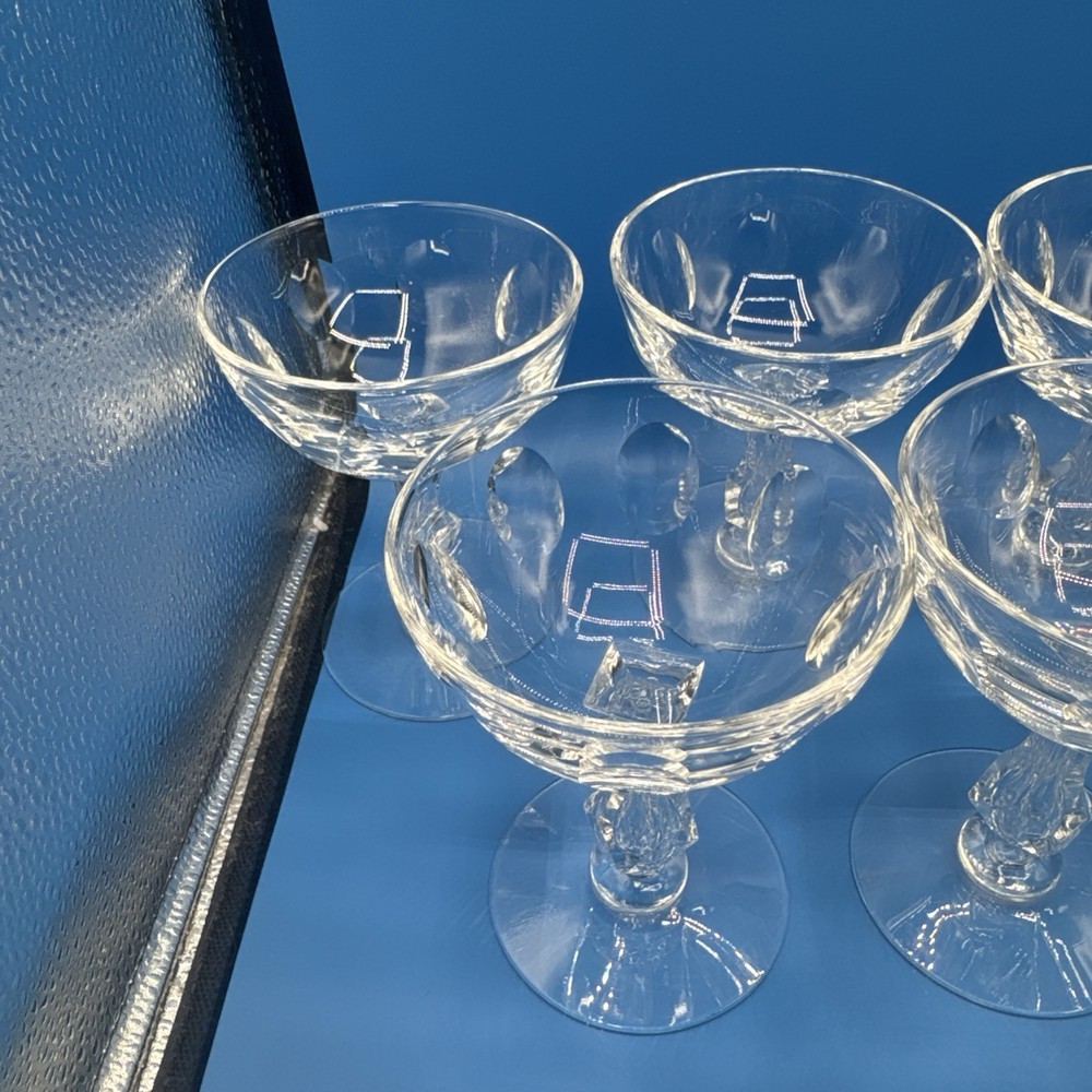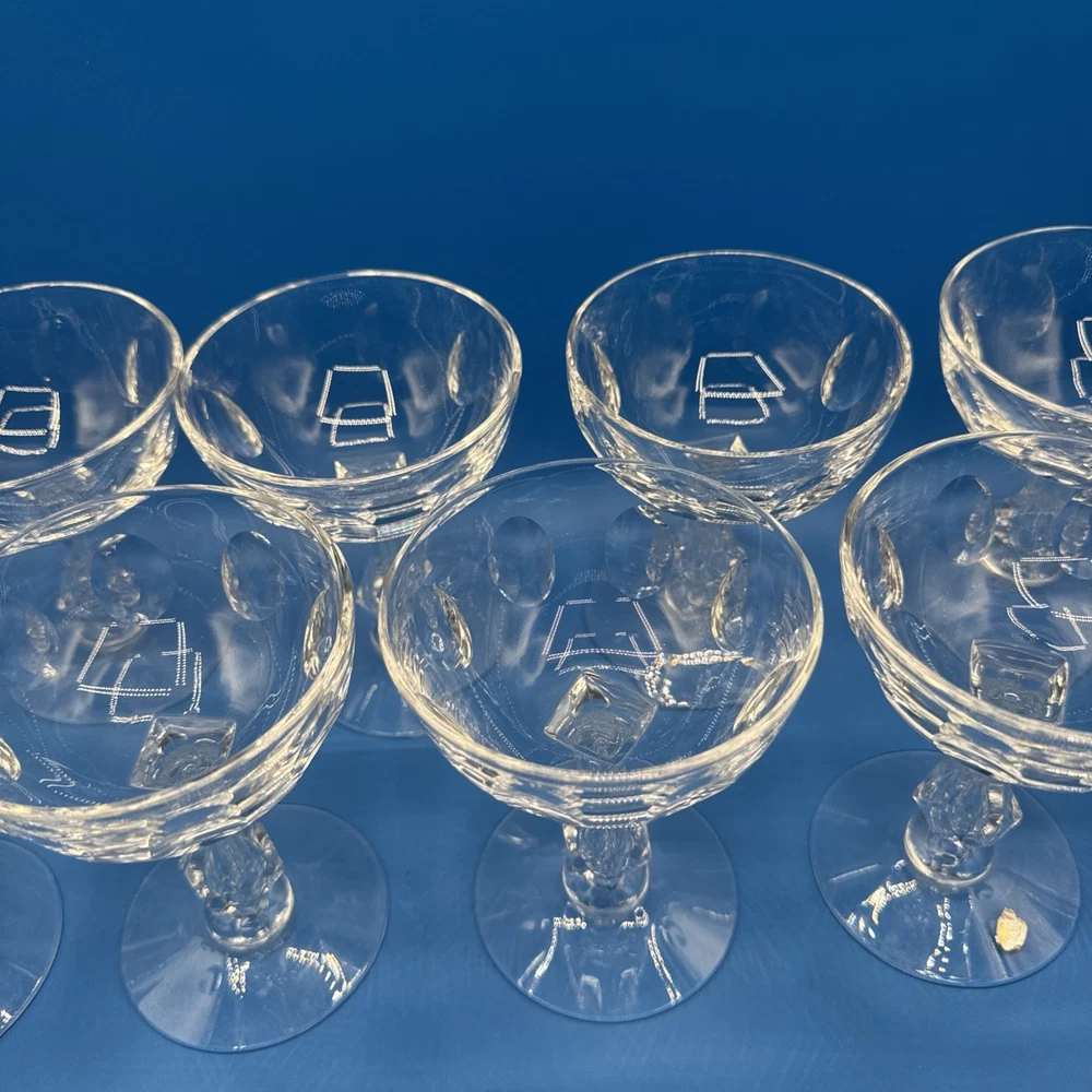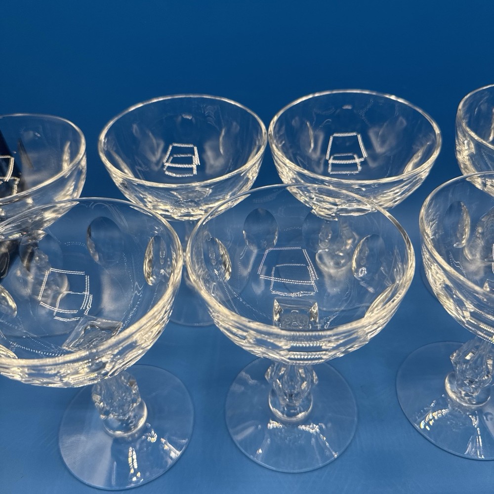 Elevate your toasting experience with the TIARA by Tiffin Franciscan Crystal Coupes. This lot of 10 sherbet glasses is a testament to classic elegance and superior craftsmanship. The clear crystal glass showcases your sparkling wines and desserts with a touch of sophistication, making each occasion a bit more special. Designed with a timeless aesthetic, these glasses are a versatile addition to your drinkware collection. Whether you're hosting a formal dinner or enjoying a quiet evening at home, these coupes are sure to impress with their fine detailing and premium build. Pre-owned excellent condition. No cracks or damages. No original box. Please check the pictures carefully as part of the description. Feel free to ask questions if you need more information before you buy it. Thank you for your interest C-11