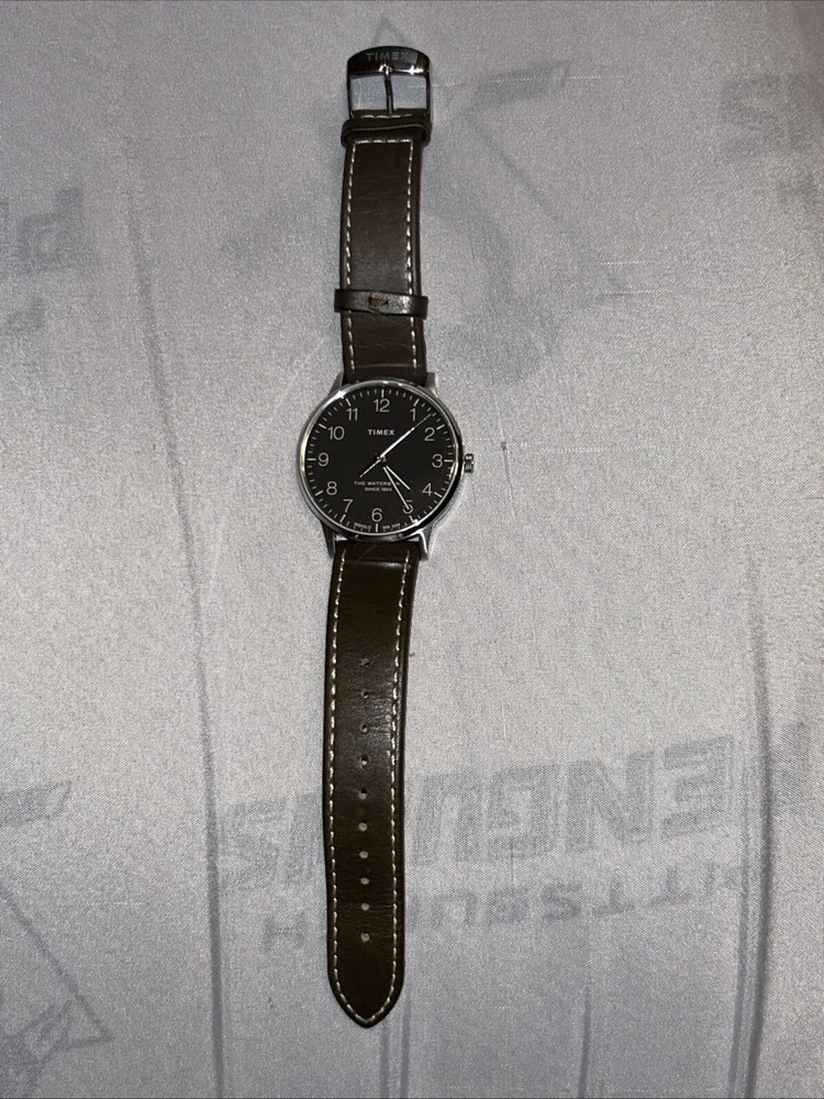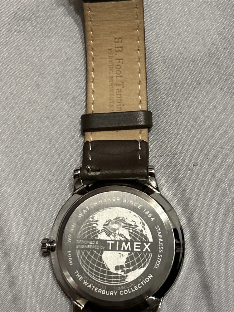 This Timex Waterbury Classic Watch is a stylish and functional timepiece suitable for both men and women. It features a quartz movement, buckle closure, and a silver case color with a brown band color. The watch was manufactured in 2020 or later and is part of the modern age group (2000-present). The Timex Waterbury watch has a mineral crystal display and comes with its original box/packaging. It is a unisex watch, with a left-handedness option, and is perfect for any occasion. The watch is categorized under Jewelry & Watches, Watches, Parts & Accessories, and Wristwatches. Get your hands on this classic watch today!