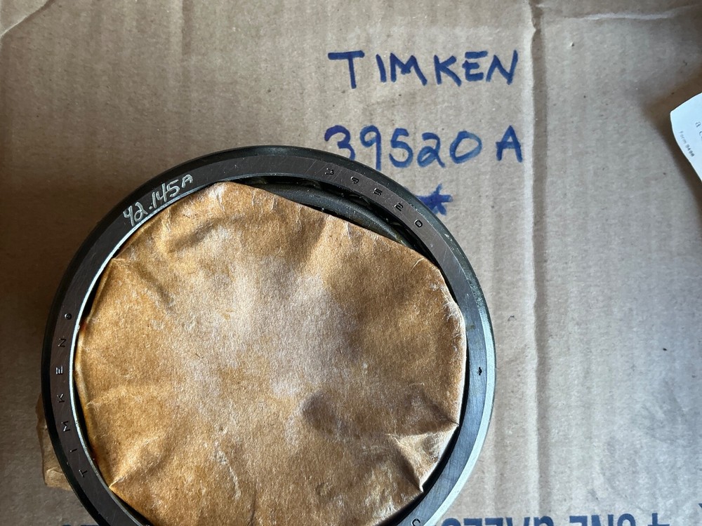 FOR SALE today is 1--- TIMKEN BEARING 39520. Please ask all questions before you purchase. This is a matched set double bearing and cup combo,. The parts are individually inscribed and match correctly. Not a cheap knock off......this is the real deal New Old Stock made in USA. These bearings have been individually inspected, they still have the factory grease and packaging but no box. I sprayed and wrapped to prevent any issues. They are immaculent. SHIPPING: I will Ship this item in the USA for $FREE ..... International buyers must purchase this item through eBay's Global Shipping Program. I have a large selection of OEM CAT parts listed in my eBay store (Jeff's Clearinghouse) with more to follow. Thanx for stopping by and good luck.